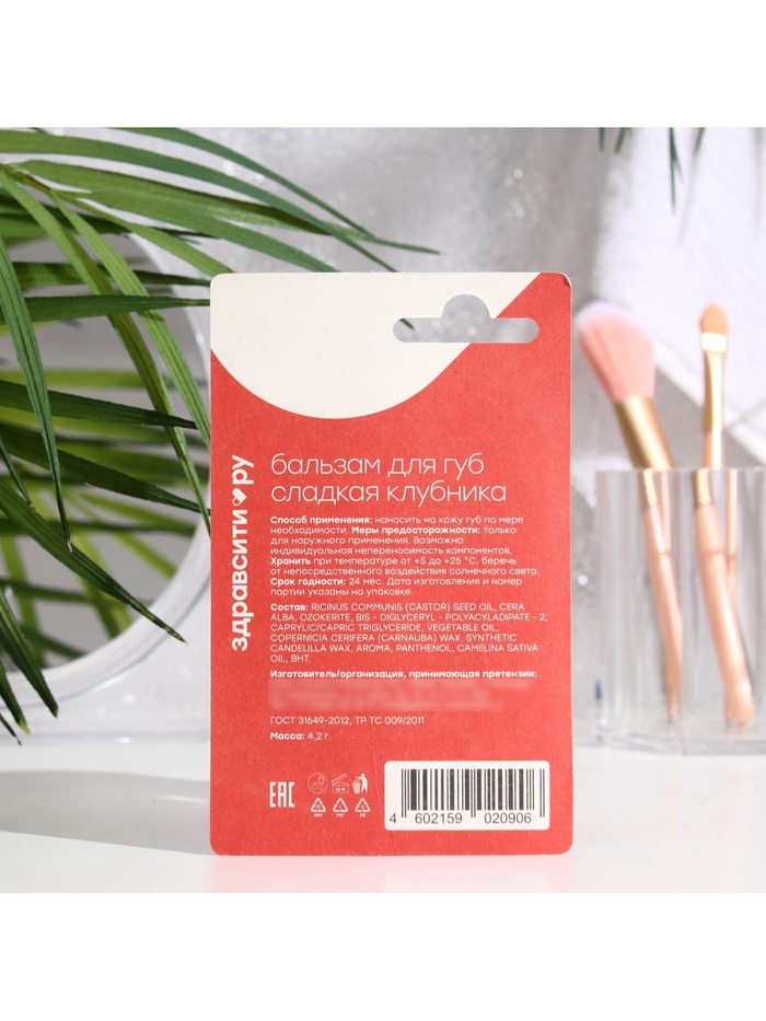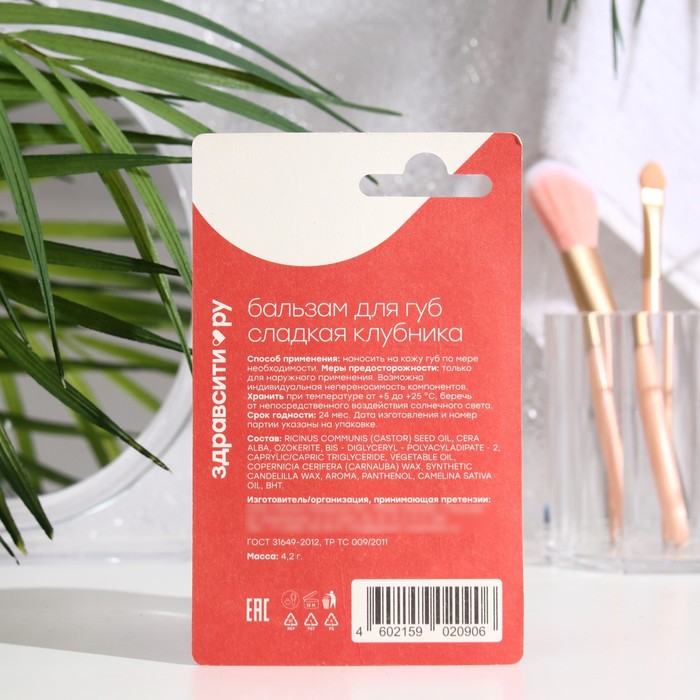 Производитель: Здравсити; Габариты: 12 x 7,5 x 2; Страна: Россия; В боксе: 128 шт; Состав: См. на упаковке; Материалы: см. на упаковке; Фасовка: по 1 шт; Индивидуальная упаковка: Блистер; Сертификат: ЕАС; Вес, г/Объём, мл: 4,2; Вкус: Клубника; Вид: Помада-стик