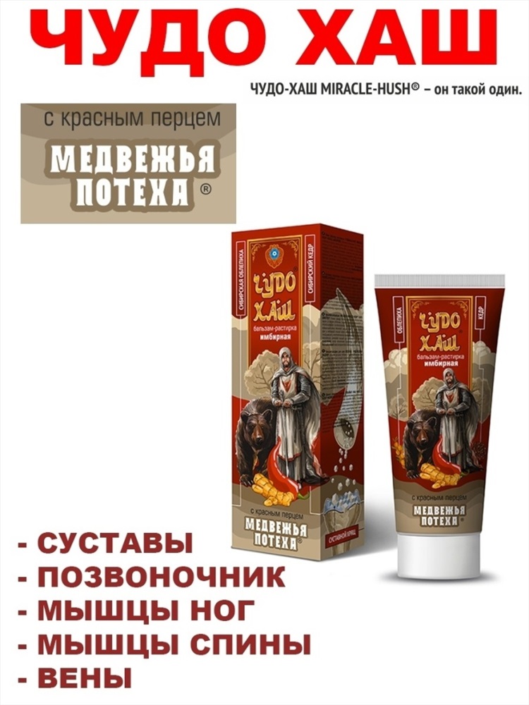 Бальзам-растирка имбирная с красным перцем МЕДВЕЖЬЯ ПОТЕХА для растираний в области суставов и позвоночника. Для тела и ног.