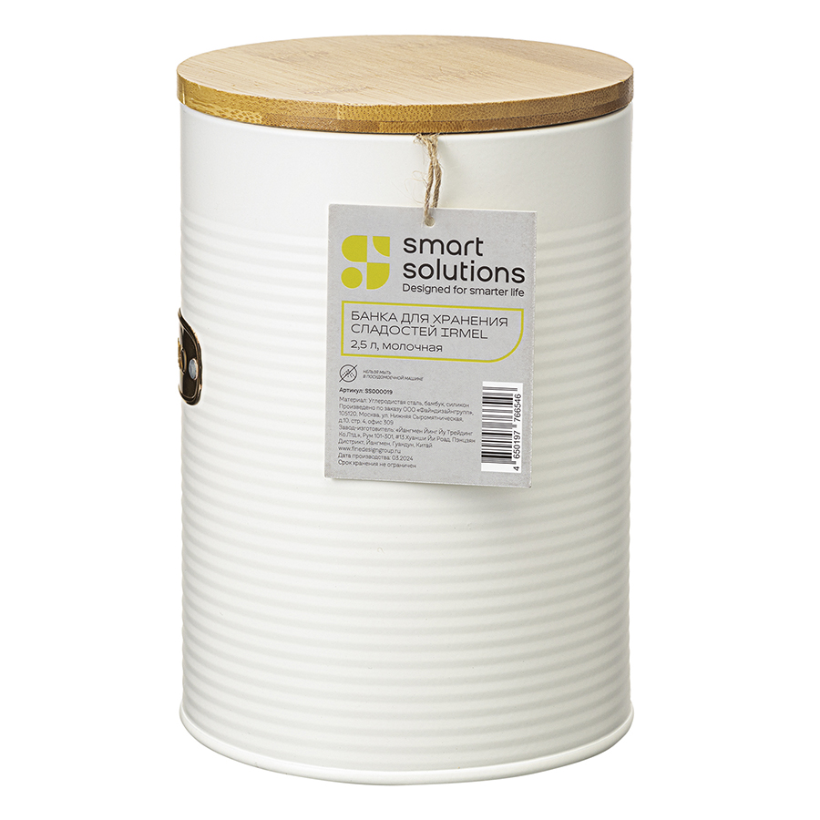 Коллекция: Irmel Название товара: Банка для хранения сладостей Irmel, 2,5 л, молочная Артикул: SS000019 Материал: углеродистая сталь, бамбук, силикон Цвет: молочный Вес: 485 гр Размеры в упаковке (ШхГхВ): 13,7 х 13,7 х 20 см Размеры без упаковки (ШхГхВ): 13,7 х 13,7 х 20 см Банка для хранения сладостей Irmel от бренда Smart Solutions станет прекрасным дополнением современного кухонного интерьера. Ее дизайн органично вписывается в различные стилевые решения: минимализм, лофт, фьюжн, эклектика, афро, сканди и другие. Особенности и преимущества: - Использование в изготовлении углеродистой стали увеличенной толщины гарантирует емкости отличные эксплуатационные характеристики – устойчивость к повреждениям, износу и простой уход. - Порошковое покрытие защищает металлическую поверхность от коррозии и обеспечивает изделию дополнительную прочность. - Крышка из бамбука имеет увеличенную толщину и силиконовый уплотнитель, благодаря чему плотно прилегает, исключая попадание внутрь банки пыли и влаги. Материалы: углеродистая сталь, бамбук, силикон. Размеры: 13,7x13,7x20 см. Объем: 2,5 л. Цвет: молочный. Комментарии к товару