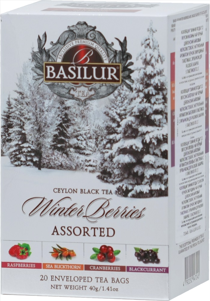 Ассорти черного цейлонского чая с натуральными раcтительными добавками.1. Чай черный цейлонский мелколистовой, натуральный ароматизатор «Клюква».2. Чай черный цейлонский мелколистовой, натуральный ароматизатор «Малина».3. Чай черный цейлонский мелколистовой, натуральный ароматизатор «Облепиха».4. Чай черный цейлонский мелколистовой, натуральный ароматизатор «Черная смородина».Настоящее фруктовое удовольствие из самого сердца чайного мира!