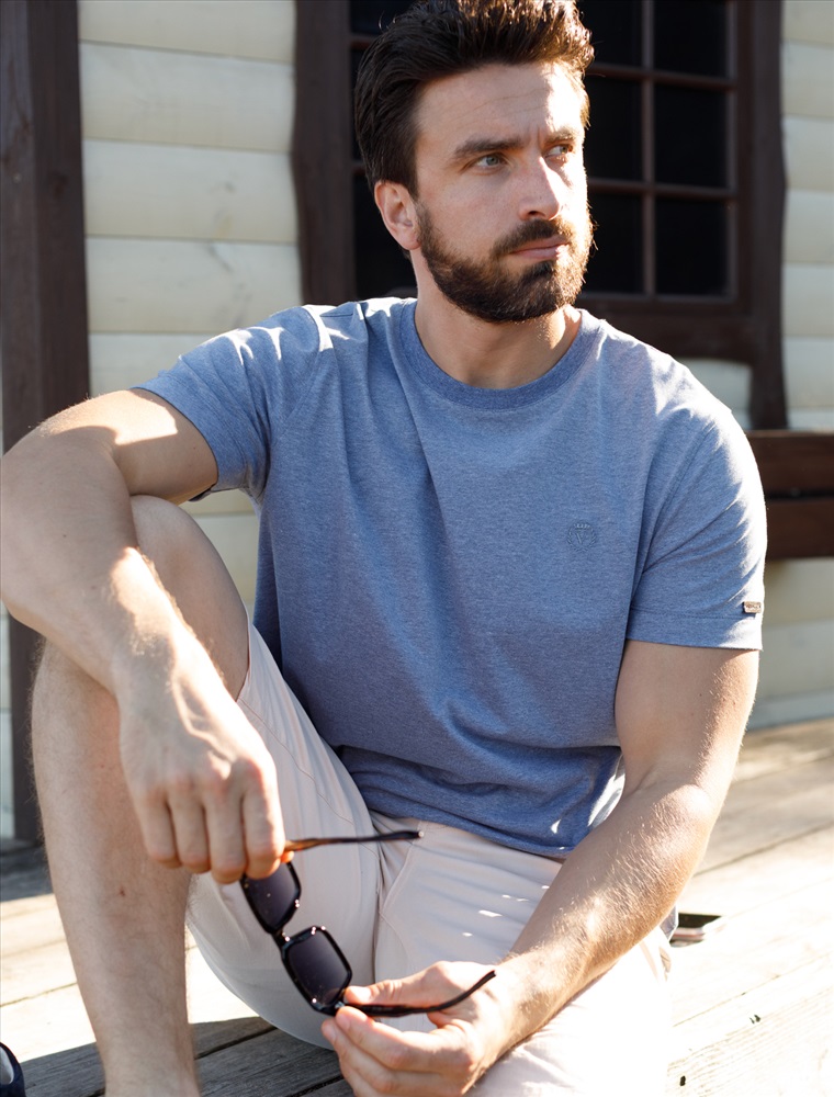 Футболка выполнена из хлопка с эластаном. Очень приятная на ощупь и комфортная при носке, изделие сохранит свой безупречный внешний вид в течение долгого времени. Модель дополнена лаконичной вышивкой с буквой V и логотипом бренда из эко-кожи.
