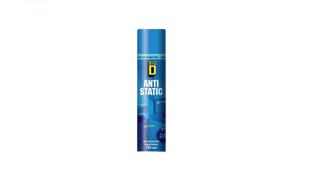 Средство для антистатической обработки синтетических материалов марки.Big D предназначено для снятия и предотвращения возникновения статического электричества на одежде и других изделиях из синтетических тканей. Устраняет прилипание тканей к телу, искрение и треск, не оставляет следов. Не имеет остаточного запаха. Эффективен и удобен в применении. Подходит для любых видов тканей. Способ применения: Встряхнуть баллон в течение 2-3 секунд, нажать на клапан и с расстояния 25-30 см равномерно распылить средство на изнаночную поверхность ткани до её лёгкого увлажнения. Внимание! При распылении баллон не переворачивать!
