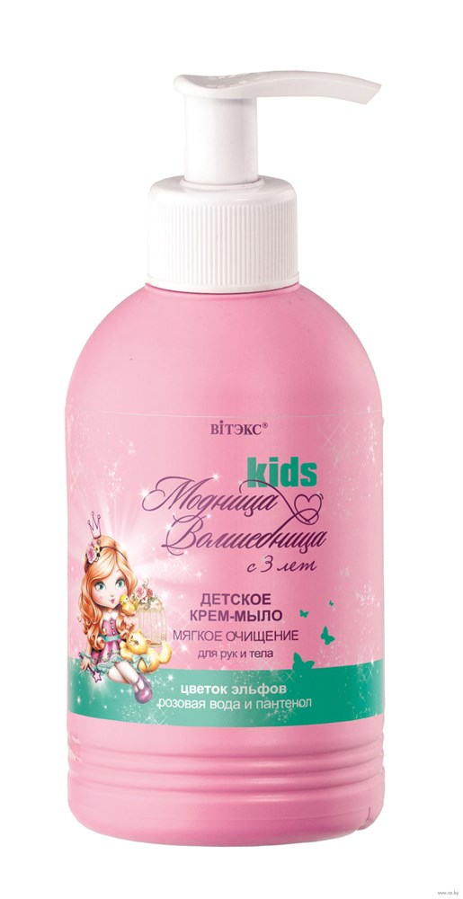 Детское крем-мыло «Мягкое очищение» – секрет маленьких волшебниц для необыкновенной красоты очаровательных модниц. Словно по взмаху волшебной палочки, маленькая модница превращается в настоящую принцессу. Нежное крем-мыло 2 в 1 для мытья рук и тела с цветком Эльфов и розовой водой максимально эффективно и бережно очищает от загрязнений, прекрасно ухаживает за чувствительной кожей маленьких модниц, оставляя ее увлажненной и безупречно чистой. D-пантенол – смягчает и защищает кожу. А радостный и яркий аромат не оставляет юных принцесс равнодушными .Удивительно нежная и шелковистая кожа, как у самой прекрасной принцессы в мире! Может применяться так часто, как это необходимо. Супермягкая формула крем-мыла с нейтральным уровнем рН не сушит кожу.