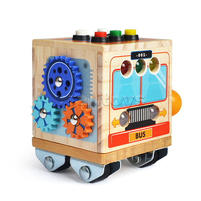 Размер: 7*7*10 см. - рулевое колесо. - рычажный механизм. - автомобильное снаряжение. - подсветка кнопки автомобиля. Работает от батареек 2 шт типа "ААА" ( в комплект не входят) Материал: дерево, металла, пластика. Соответствует требованиям безопасности продукции. Для детей от 3 лет.