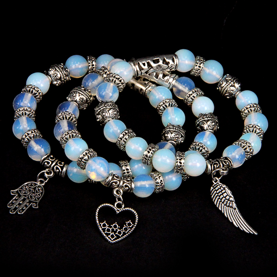 BJBS-093 Браслет из Лунного камня (опалит), подвески в ассорт. оптом.