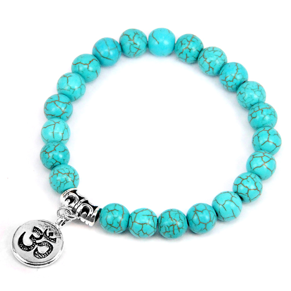 BJBS-124-2 Браслет Ом, бирюза, d.8мм оптом.