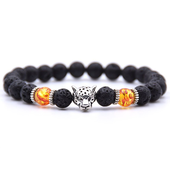 BJBS-129 Браслет Леопард, лава, янтарь (синт.), d.8мм оптом.