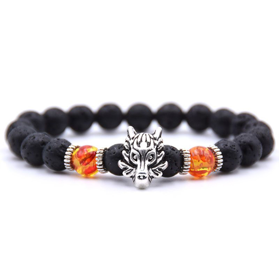 BJBS-130 Браслет Дракон, лава, янтарь, d.8мм