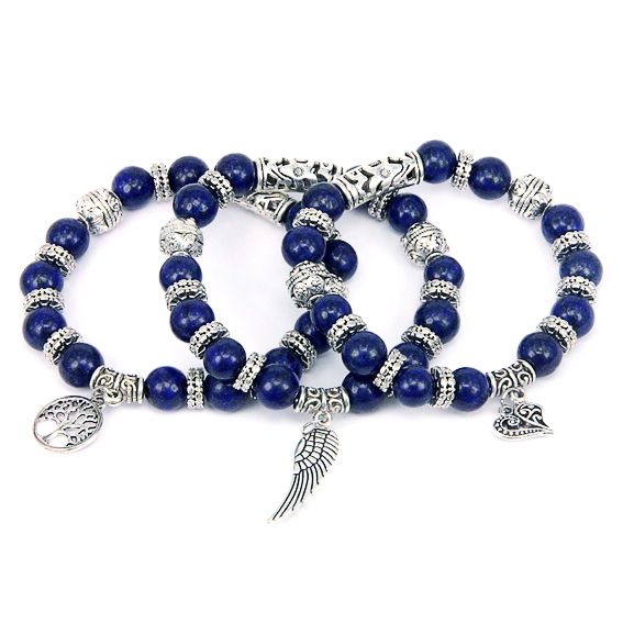 BJBS-162 Браслет из натурального камня Лазурит, подвески в ассорт. оптом.