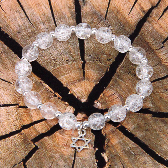 BJBS-166-1 Браслет Сахарный кварц 8мм со Звездой Давида, белый