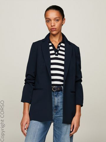 Blazer von TOMMY HILFIGER, Aus hochwertigem Polyester, Slim Fit mit Reverskragen und Ein-Knopf-Verschluss, Zwei Leistentaschen auf Taillenhöhe, Kreieren Sie mühelos elegante Looks, Obermaterial: 100% Polyester, N-Gr
