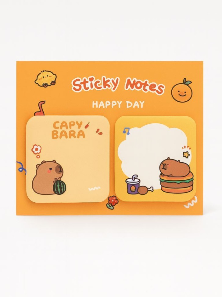 Этот блок стикеров для записей каждый из которых украшен милым изображением капибары. Компактный размер позволяет использовать его для быстрых заметок, списков задач или напоминаний.