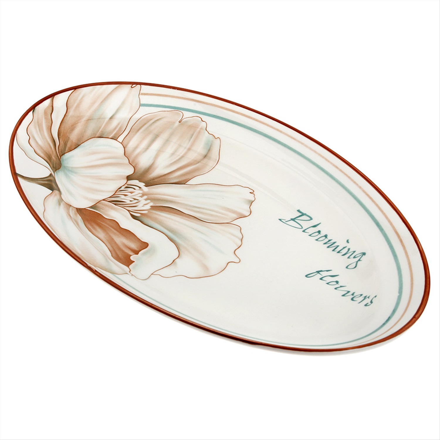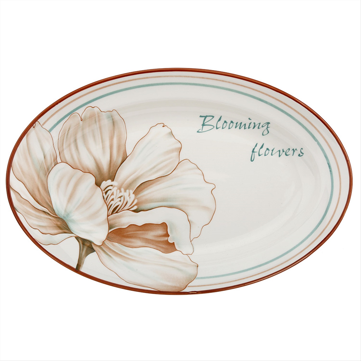 "Блуминг флауэрс (Blooming flowers)" Блюдо овальное фарфоровое 314х208х37мм, с деколью, отводка (Китай)