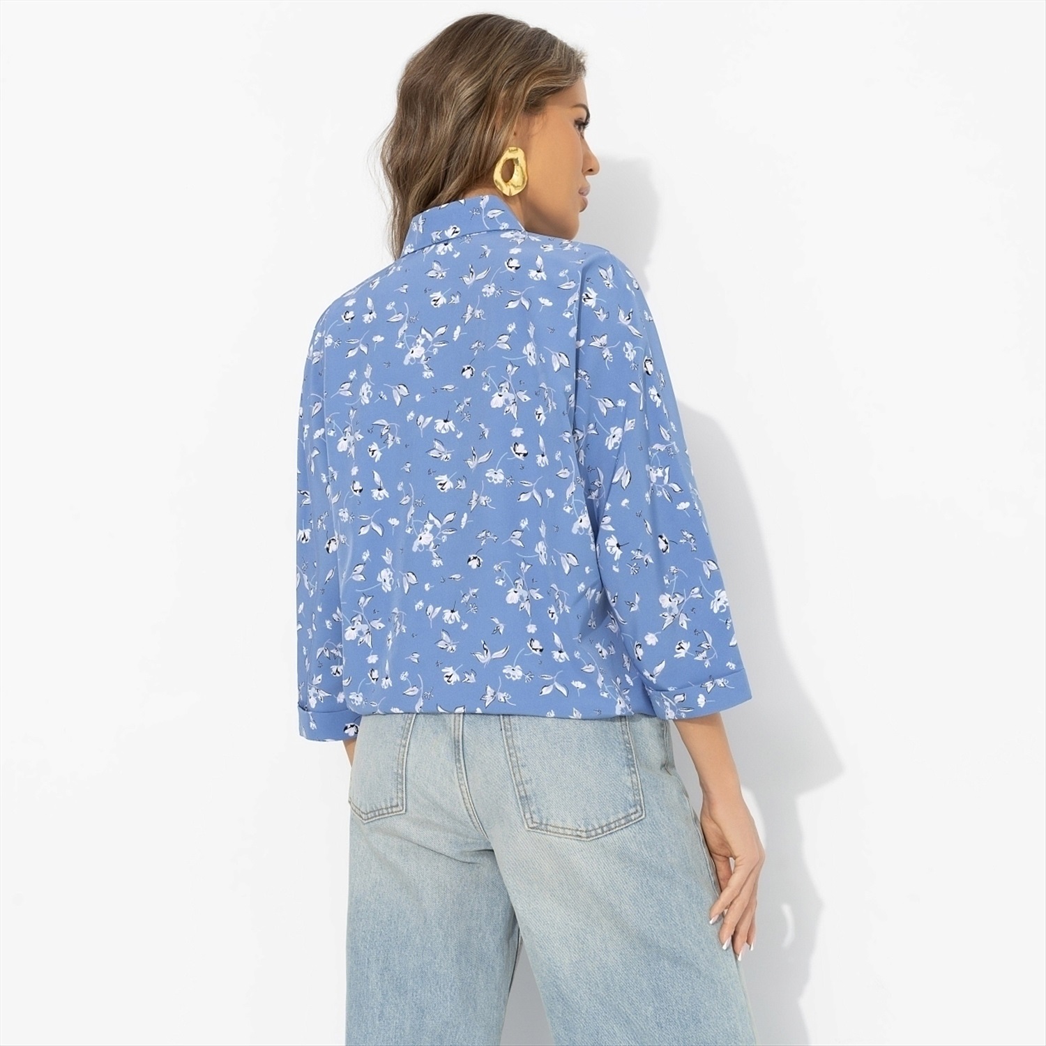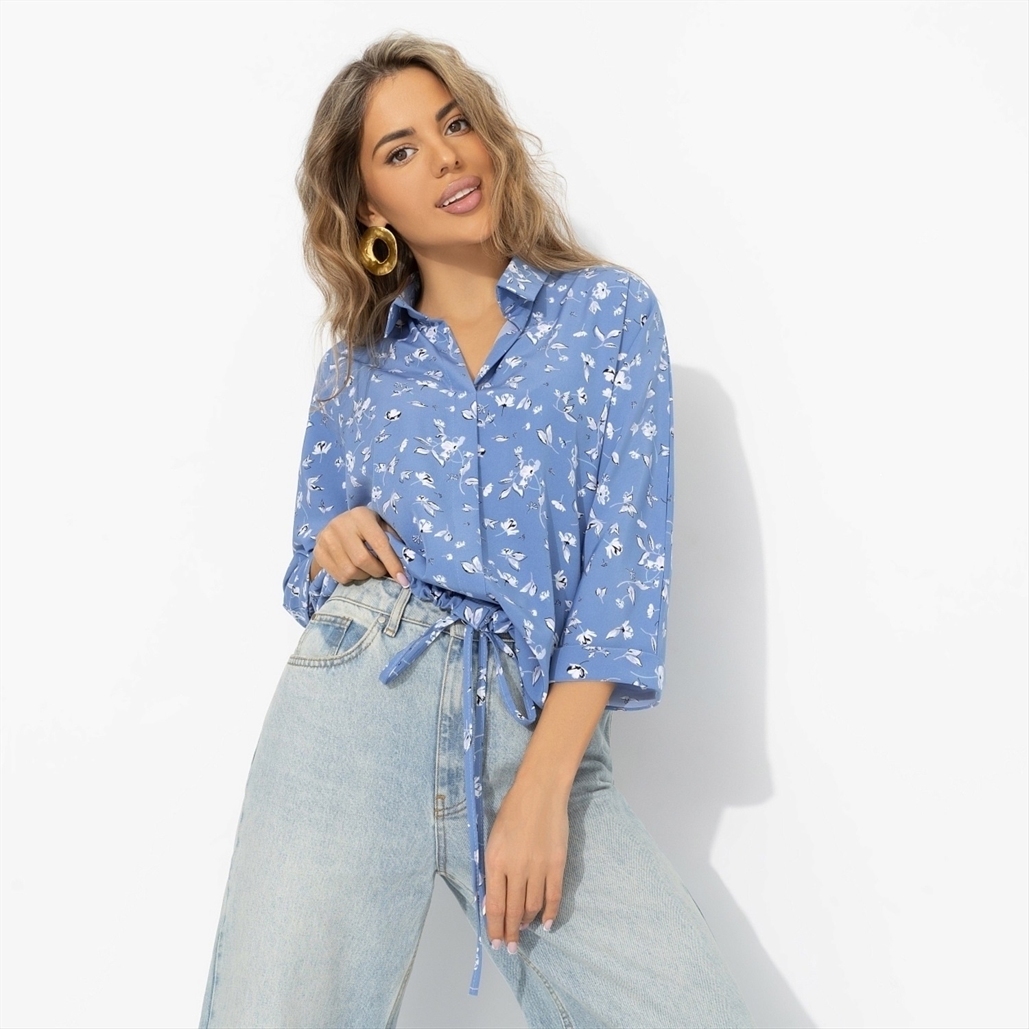 Что надеть, когда ещё не решила, каким будет твой день? Выходишь за кофе в новой блузке, ловишь своё отражение в стекле и понимаешь: я выгляжу идеально. Небесный цвет подсвечивает лицо, принт добавляет динамичности и создает ощущение «я только из отпуска», хотя ты просто надела блузу и джинсы. Лёгкая ткань «ниагара» красиво струится и не утяжеляет силуэт. Кулиска по нижнему краю позволяет носить блузу несколькими способами – под разные сценарии дня.