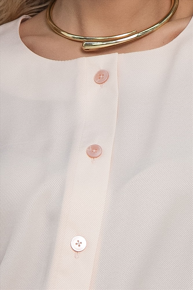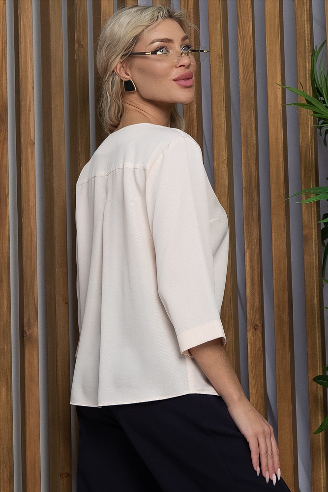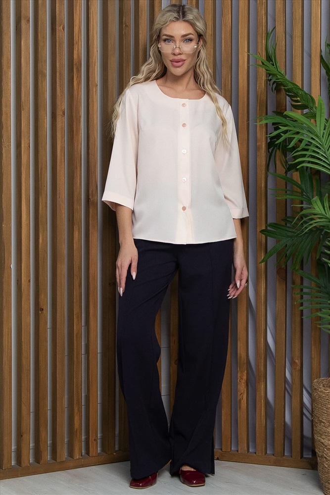 Изящная блузка полуприлегающего силуэта в персиковом оттенке — это идеальный выбор для любого события! Она выполнена из тонкой и лёгкой ткани, которая струится, создавая лёгкость и воздушность. Поверхность матовая, слегка рельефная, что придаёт ей неповторимый шарм.