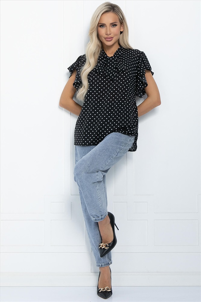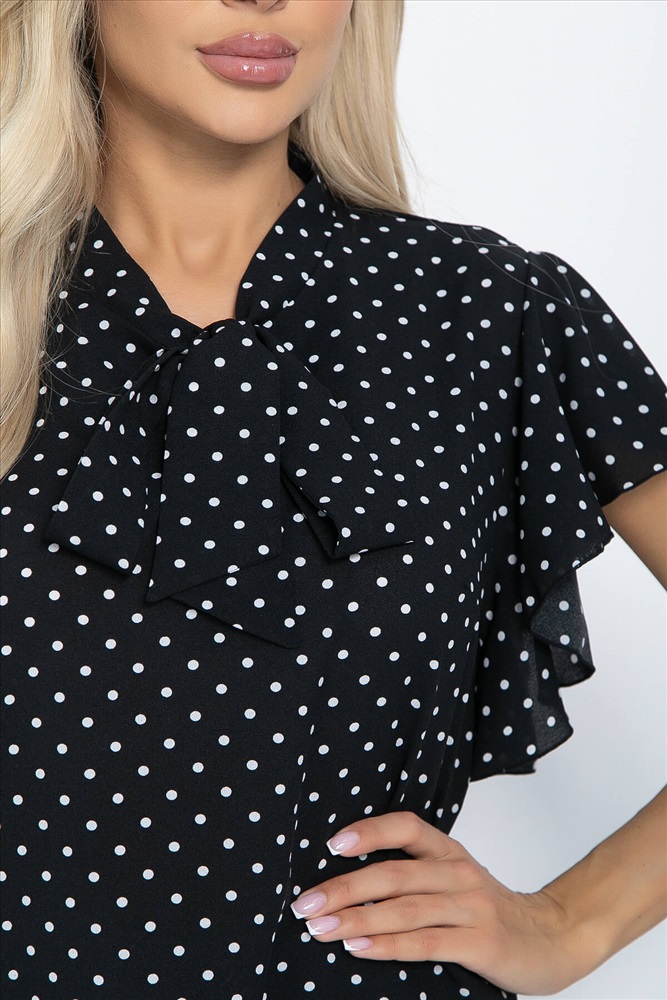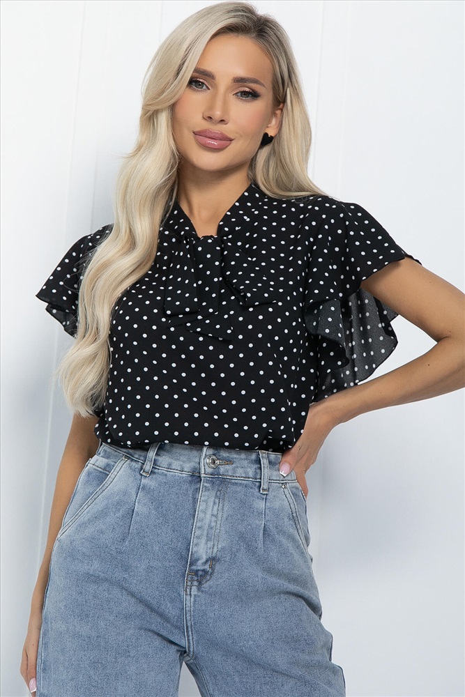 Добавьте в свой гардероб нотку романтизма с помощью нашей изящной блузки! Эта модель отличается нежными рукавами-крылышками, которые с легкостью подчеркивают ваши плечи и создают воздушный образ. Особо стоит отметить изысканный бант на горловине, который придает блузке шарм и элегантность. Можно носить под пиджаком, что делает её идеальным вариантом для работы или деловых встреч.