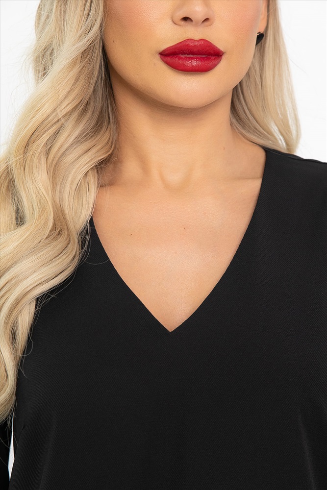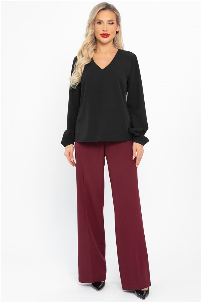 Элегантная блузка с длинными рукавами, подходящая как для офиса, так и для повседневных образов. Модель с V-образным вырезом придает изделию утонченность, а длинные рукава с манжетами на резинке обеспечивают удобство и стильный внешний вид. Эта блузка станет идеальным дополнением вашего гардероба, сочетая функциональность и эстетику. Она универсальна: подходит как для деловых встреч, так и для повседневных дней, помогая чувствовать себя уверенно в любой ситуации.