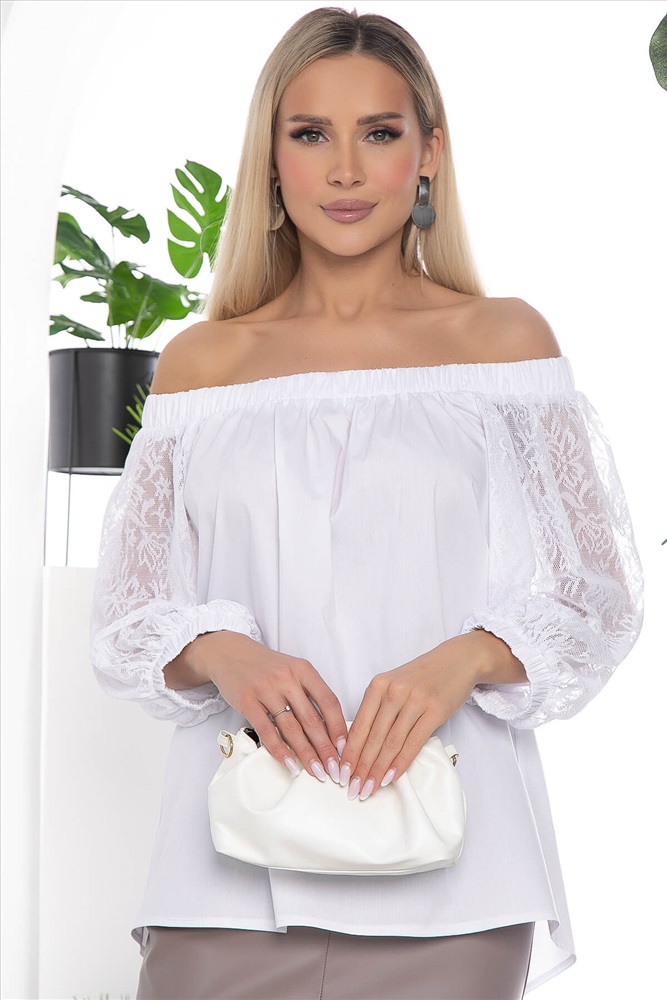 Лёгкая летняя женская блузка "крестьянка" - находка для жаркого лета! Дышащая хлопковая блуза с объёмными широкими рукавами три четверти, благодаря оптимальной длине и продуманному крою отлично садится на любую фигуру. Блузка имеет очаровательный вырез кармен, собранный на резинку, позволяющий носить как с открытыми, так и с закрытыми плечами. Резинка в манжетах делает рукава объёмными. Превратите длинный рукав в короткий пышный фонарик или оставьте локти закрытыми. Можно носить со спущенными плечами, заправленной или навыпуск. Завершите образ яркими аксессуарами. Комфортная посадка и универсальность позволяют использовать белую блузу в разных ситуациях: как классическая, повседневная, офисная, нарядная, праздничная, и вечерняя на свидание в ресторан.