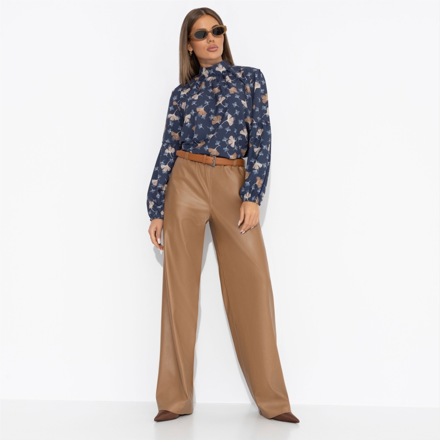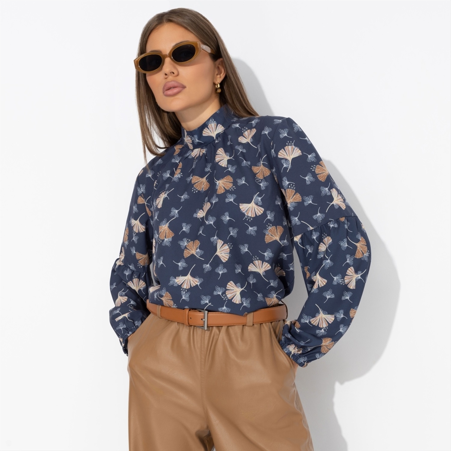 Игра контрастов – спокойный глубокий оттенок и динамичный принт создают стильный баланс между элегантностью и дерзостью. Свободный крой придаёт образу воздушность, а воротник-стойка добавляет театральный шарм, будто намекая на скрытую драму. Блуза ЧАРУТТИ – настоящий моноспектакль, где каждая деталь играет свою роль. Блуза свободного кроя. Изделие хорошо смотрится в заправленном виде и навыпуск. Рукава оформлены скрытой резинкой. Блуза хорошо смотрится на любом типе фигуры.