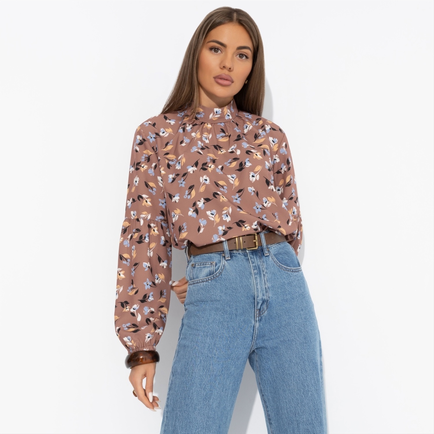 ТН ВЭД: 6206400000; Состав: «Ниагара» (65% п/э, 30 вискоза, 5% эластан); Плотность ткани: Тонкая; Тип ткани: Текстиль; Вид застежки: Пуговица/-ы; Декоративные элементы: Драпировка; Карманы: Нет; Основной цвет ткани: Коричневый; Отрезная талия: Нет; Подклад: Нет; Резинка по талии: Нет; Рисунок/раппорт: Нет, все изделия идентичны; Сезон: Демисезон; Силуэт: Прямой; Стиль: Повседневный