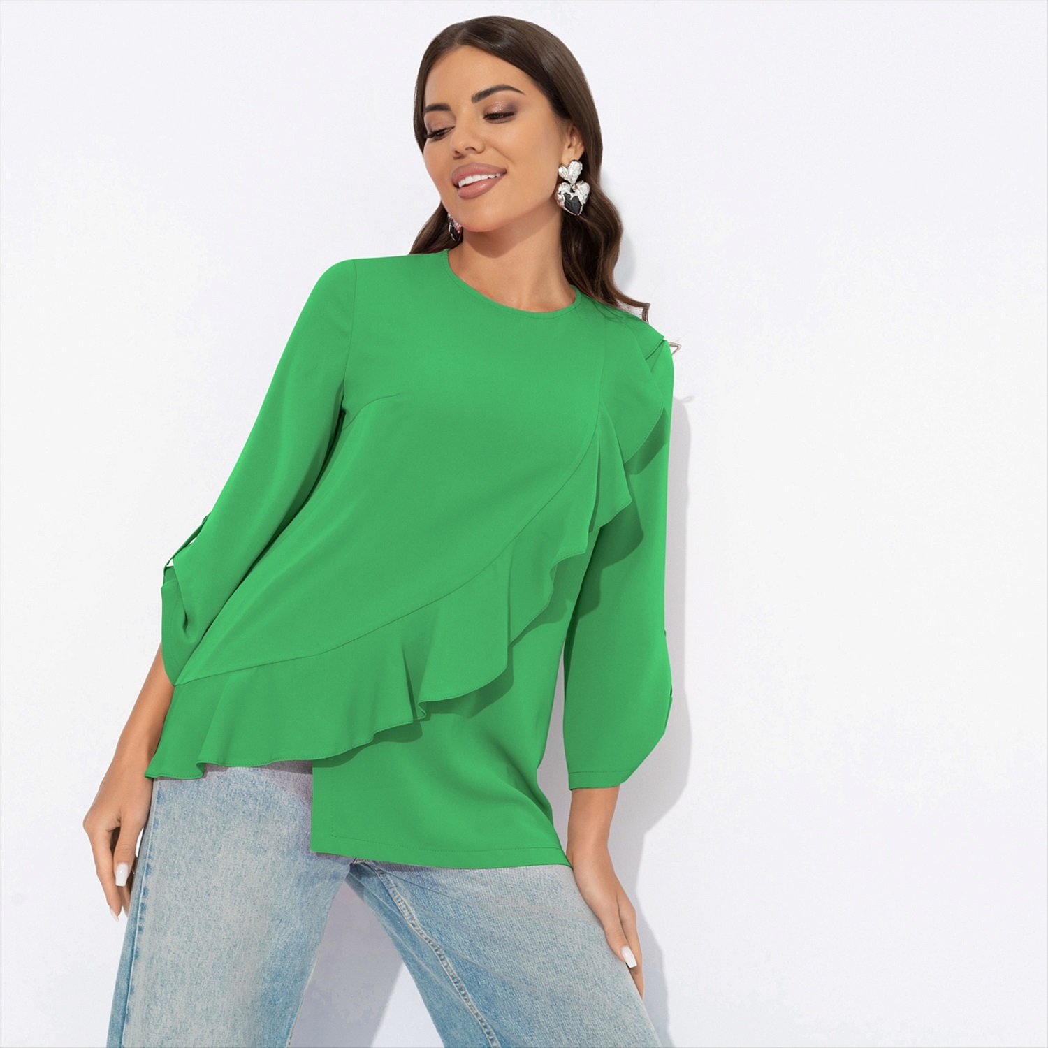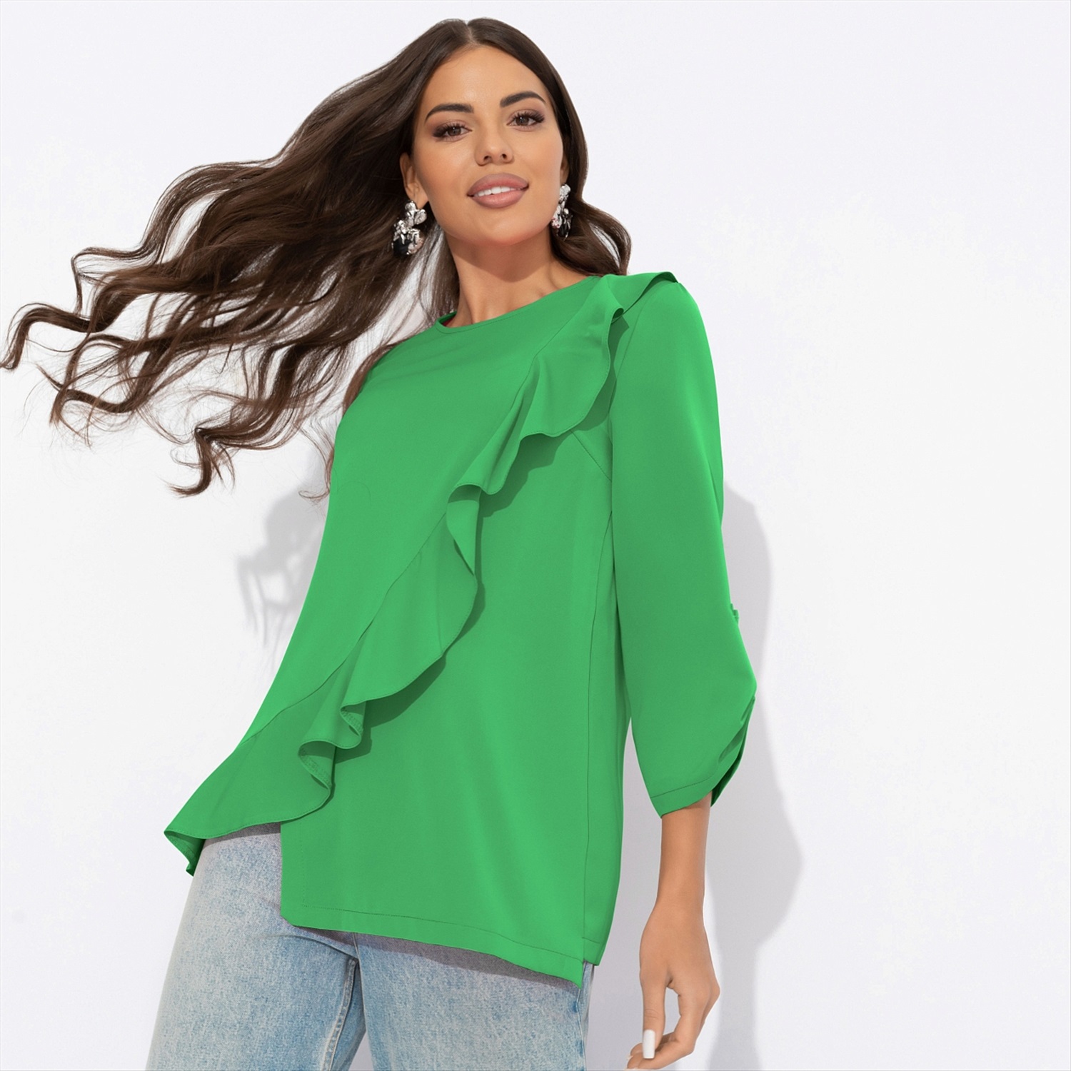ТН ВЭД: 6206400000; Состав: Ниагара (95% п/э, 5% эластан); Плотность ткани: Средняя; Тип ткани: Текстиль; Вид застежки: Пуговица/-ы; Карманы: Нет; Основной цвет ткани: Зелёный; Подклад: Нет; Рисунок/раппорт: Нет, все изделия идентичны; Сезон: Круглогодичный; Силуэт: Прямой; Стиль: Нарядный