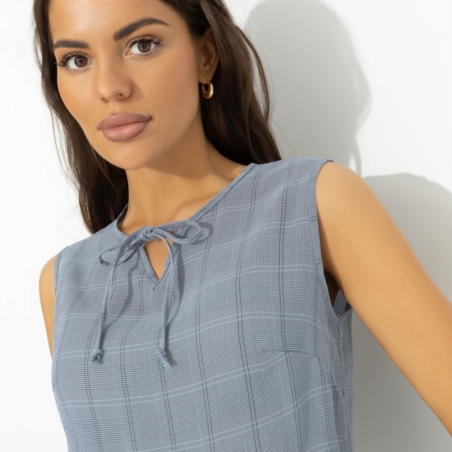 Прибавить к своему отпуску еще один день, чтобы замедлиться? Верное решение! Проведи время наедине с собой в блузе CHARUTTI и окружи себя прекрасным, чтобы зарядиться хорошим настроением надолго. Блуза без рукавов прямого силуэта. Есть тонкие завязки в зоне декольте. Блуза хорошо смотрится в заваленном виде и навыпуск. Блуза с выточками «Легкое настроение (cage)» — это великолепный выбор для женщин, стремящихся к непринуждённому стилю и комфорту. Выполненная из блузочной ткани «клетка», она идеально подходит для летнего отдыха и прогулок на свежем воздухе. Эта женская блуза без рукавов прямого силуэта с тонкими завязками в зоне декольте добавит нотку игривости и романтики в ваш образ. Закажите эту блузу оптом и подарите своим клиентам возможность ощутить лёгкость и воздушность, с которой каждый день станет праздником. Эта женская летняя блуза — настоящий хит среди модных трендов. Она отлично смотрится как в заправленном виде, подчёркивая линию талии, так и навыпуск, создавая расслабленный и свободный образ. Блуза женская больших размеров обеспечит комфорт и стиль каждой женщине, независимо от фигуры. Заказывая такие блузки оптом, вы не только удовлетворите потребности своих клиентов, но и предложите им стильное решение для любого случая, будь то прогулка по городу или вечернее мероприятие. Блуза «Легкое настроение» — это не просто одежда, это возможность выразить свою индивидуальность и вкус. Эта женская нарядная блуза станет отличным дополнением к любому гардеробу, её можно носить как с джинсами, так и с юбками. Стильный дизайн и универсальность делают её незаменимой в любом сезоне. Предложите своим клиентам блузы женские оптом, и они обязательно оценят качество и стиль, которые предлагает этот уникальный предмет гардероба. Пусть ваш магазин станет местом, где каждая женщина найдёт свою идеальную блузу. Комментарии к товару