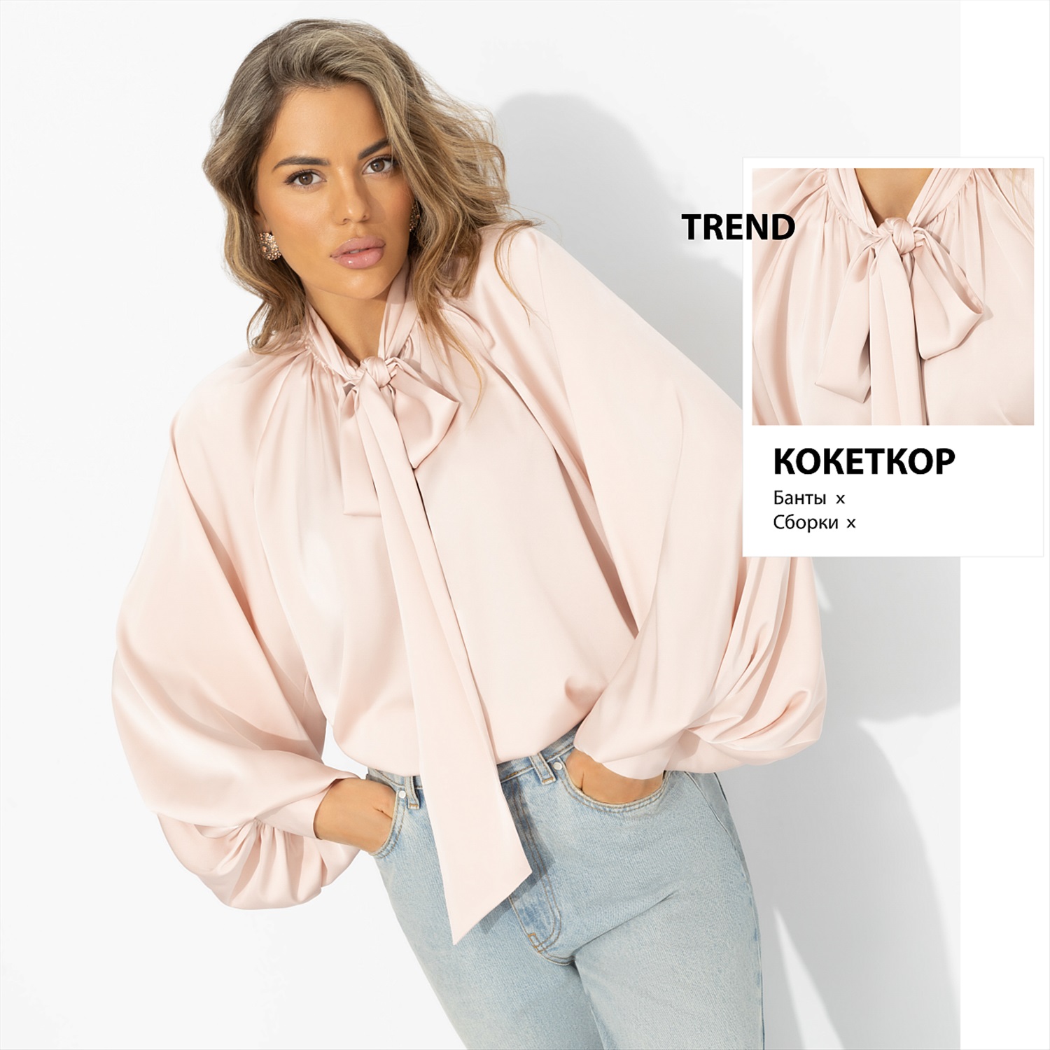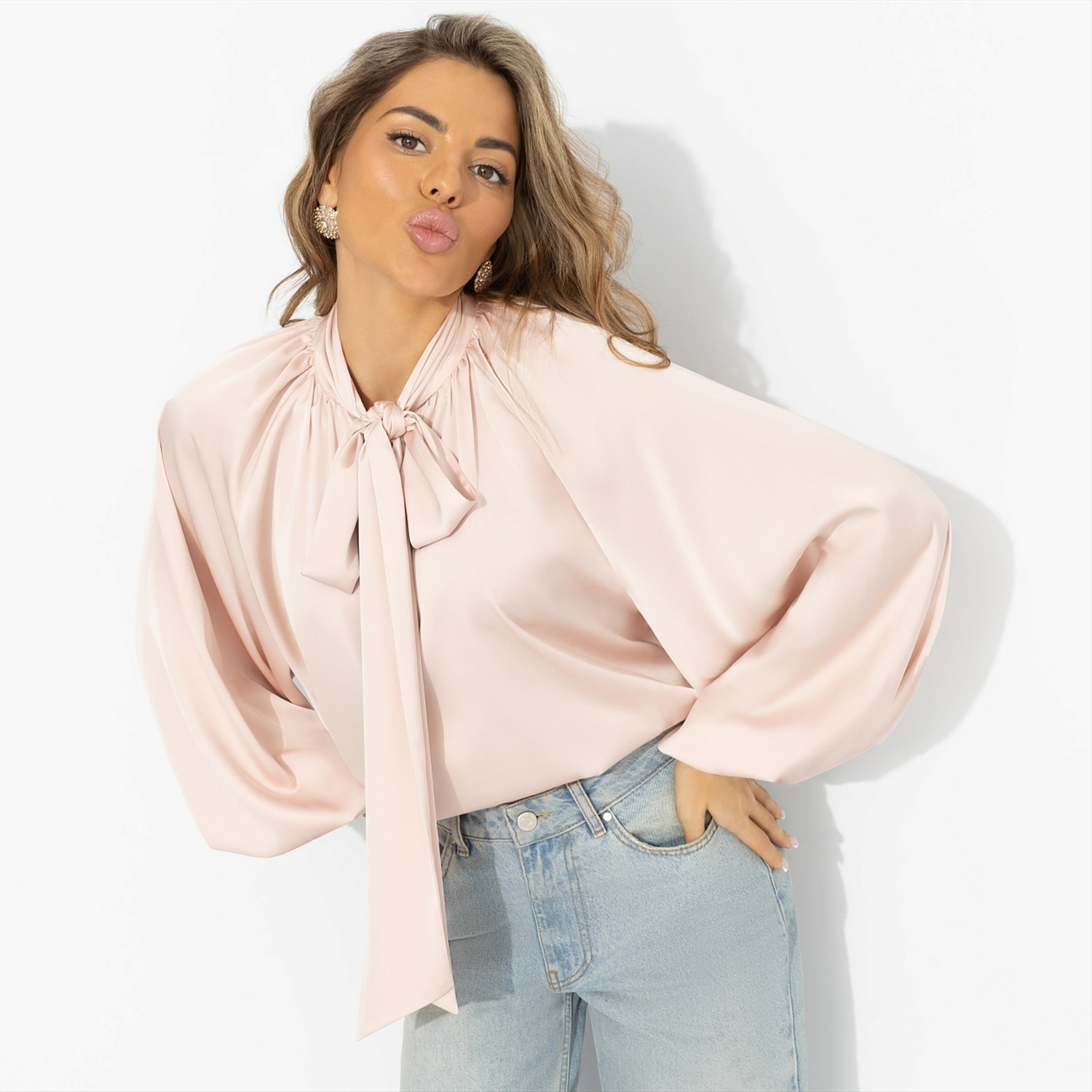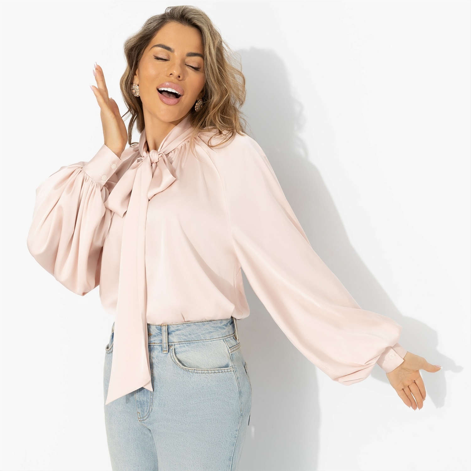 Воздушные объёмы и текучие ткани – один из главных подиумных приёмов 2026 года. Chloé и Stella McCartney снова говорят о мягкой женственности. Эта блуза вполне вписывается в эту модную философию. Надевая ее, ты получаешь лёгкость и ощущение, что всё складывается правильно. Шелковая ткань струится и создаёт динамичность образа. Блуза хорошо работает с денимом, классическими брюками и юбками – для офиса и города.