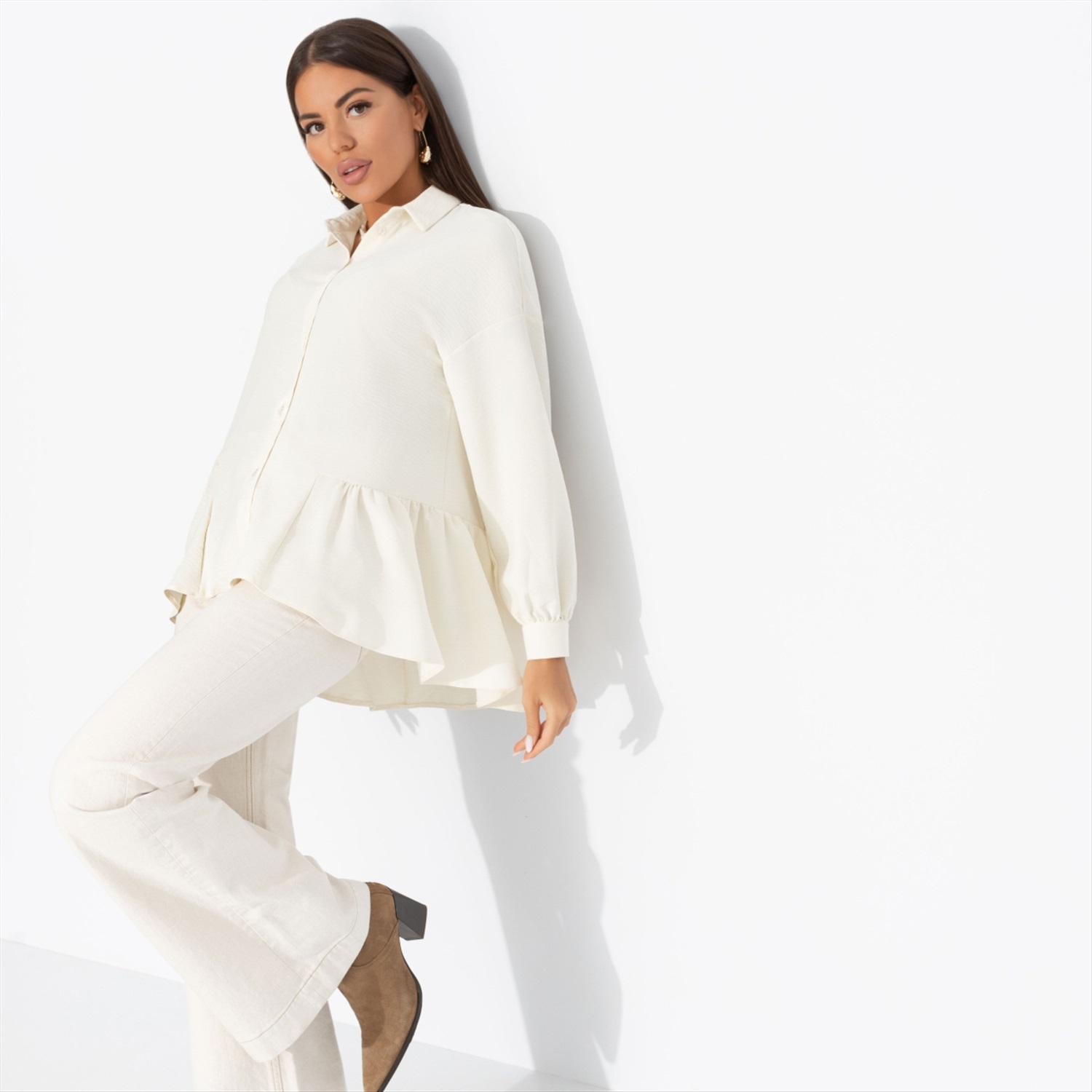 Эстетикой наполнен каждый сантиметр её жизни. Дома безупречный порядок и лавандовое саше в шкафу, её друзья получают самые красиво упакованные подарки, а собака носит ошейник ручной работы. Блуза ЧАРУТТИ как продолжение безупречного стиля жизни. Блуза свободного кроя с воланами. Застежка на пуговицы. Линия плеча слегка спущена. Материал изделия жатый.