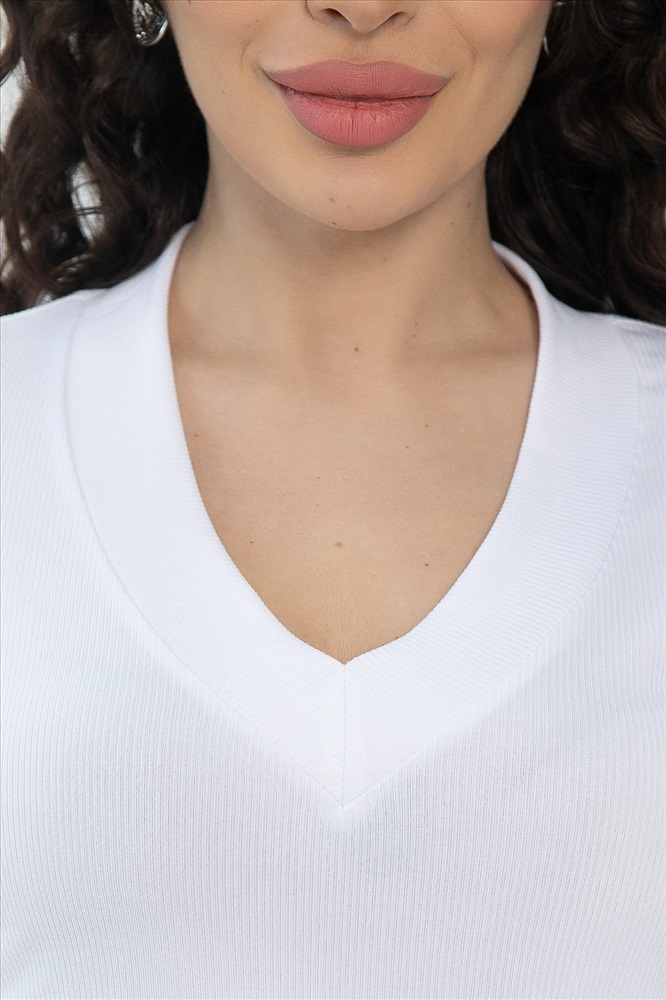 Однотонная блузка без принта – настоящий маст-хэв! Благодаря своей универсальности, она легко сочетается с практически любой одеждой, создавая множество стильных образов. V-образный вырез подчеркивает линию декольте, а короткий рукав делает ее идеальным выбором для теплого времени года или как базовый слой под пиджак или кардиган. Материал хорошо тянется.