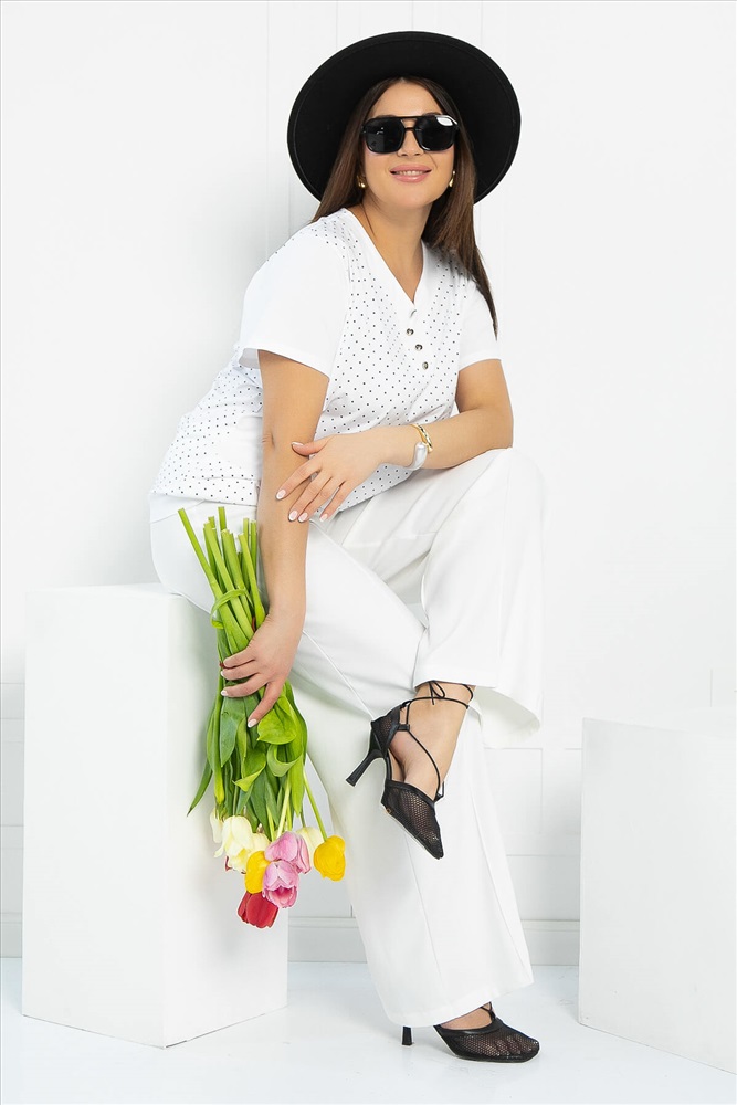 Летняя хлопковая блуза — это идеальное решение для жарких дней! Она выполнена из дышащего материала, который обеспечивает комфорт. Блуза имеет стильный дизайн с декоративными пуговицами, которые не расстёгиваются. Она легко сочетается с юбками, шортами или брюками, становясь незаменимым элементом вашего гардероба. Добавьте эту блузу в свою коллекцию и наслаждайтесь лёгкостью и свежестью летнего стиля!