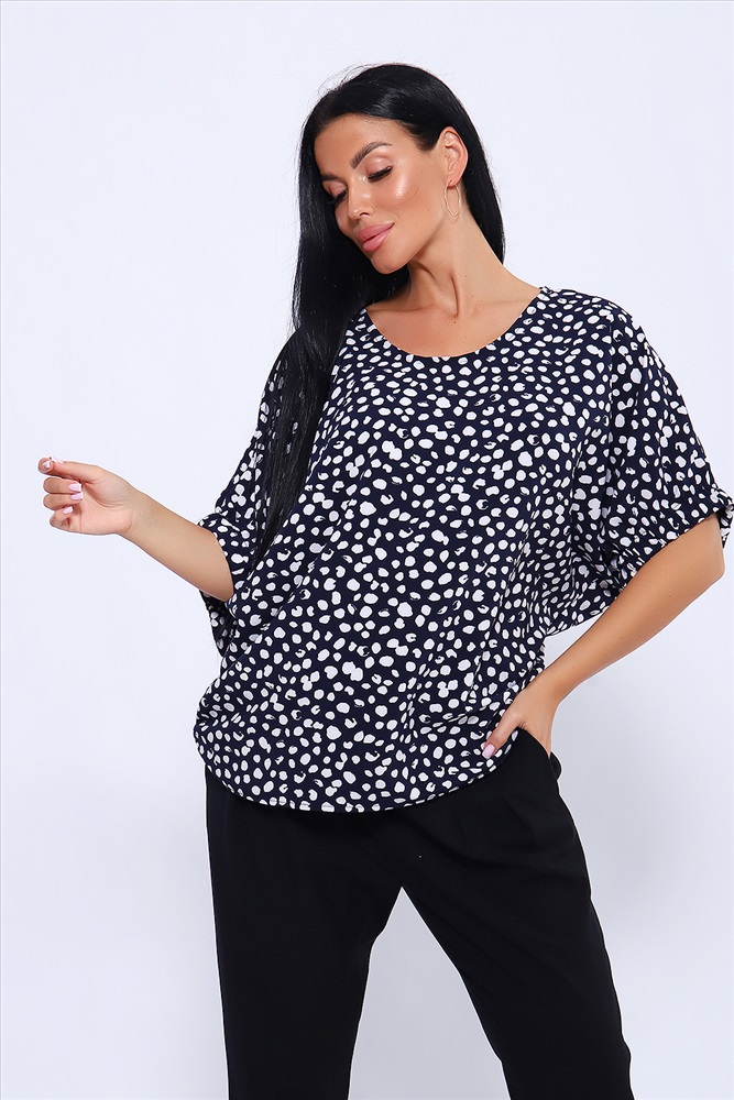 Просторная и удобная блузка из ткани индо. Свободный крой и рукав - летучая мышь, присобранный на резинку, делают эту модель актуальной для любой фигуры. Округлая горловина окантована хлопчатобумажной бейкой, длина рукава указана в замерах по плечу от горловины. Длина блузки чуть ниже линии бедра, по боковым швам низ изделия присборен. Легкая и не мнущаяся ткань индо обеспечивает удобство и комфорт при носке. Благодаря содержанию вискозы в составе ткани, блузка не электризуется и не липнет к телу. Базовые расцветки помогут создать комбинацию и с брюками, и с юбкой, на любой случай жизни.