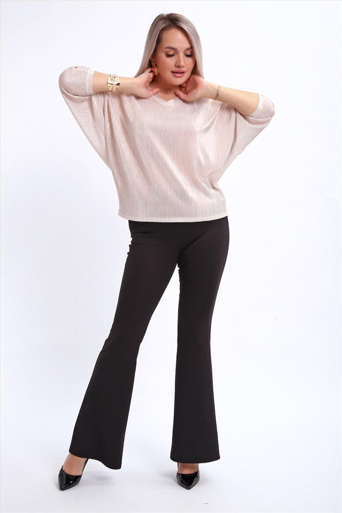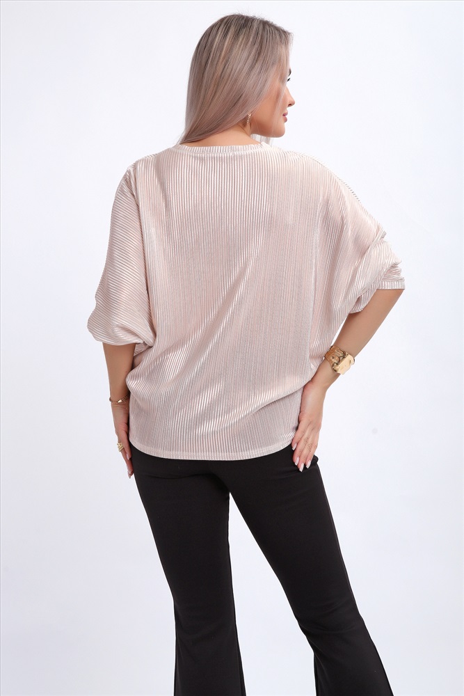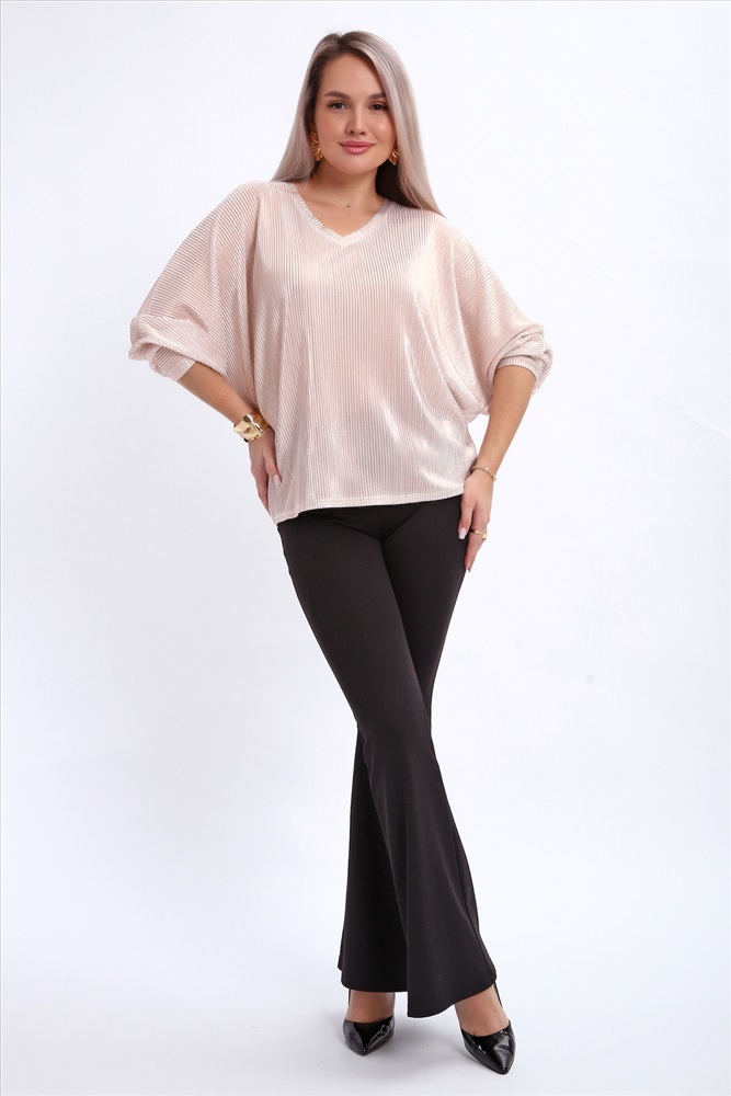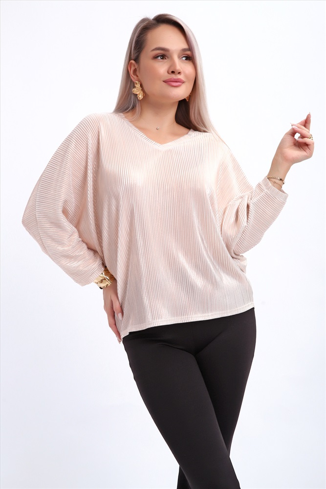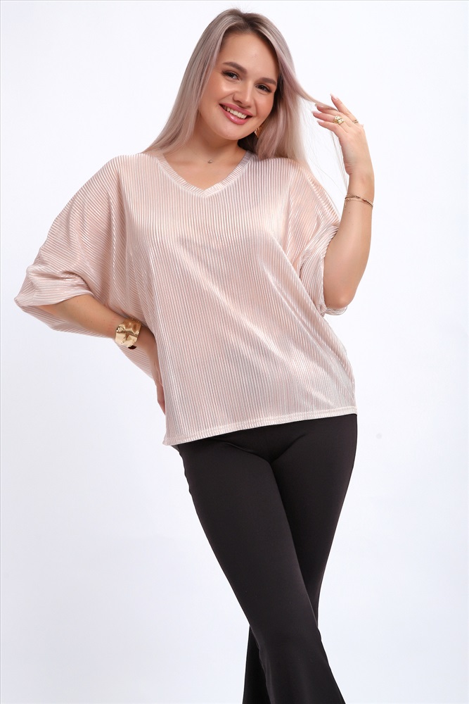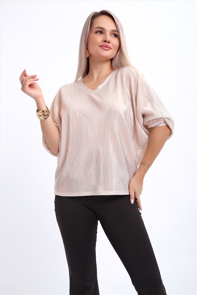 Состав: 98% п/э, 2% лайкра Модель: Блузка 32740 Тип товара: блузка Материал: атлас стрейч Бренд: Натали Суслова Сезонность: лето | осень | весна | зима Сделайте акцент на вашем стиле с помощью комфортной и изысканной блузки. Нарядная кофта - это необходимый предмет в любом гардеробе. Благодаря свободному крою, она идеально садится на любую фигуру, скрывая то, что хотелось бы спрятать и подчеркивая достоинства. Блузка выигрышно смотрится за счет ткани атлас гофре со стойким напылением фойл, которое не осыпается в процессе носки и после стирки. Ткань атлас гофре хорошо тянется и драпируется, имеет мягкий благородный блеск и совершенно не мнется. Крой блузки лаконичен, без лишних деталей, рукав летучая мышь не сковывает движений, имеет длину 3/4 и оканчивается небольшим манжетом. V-образный воротник зрительно удлиняет шею, обработан обтачкой, длина блузки до линии бедра. Легкая изящная блузка отлично впишется в вечерний наряд, а также будет блестящим дополнением к деловому и повседневному образу. В замерах длина рукава указана от горловины. Таблица размеров и веса