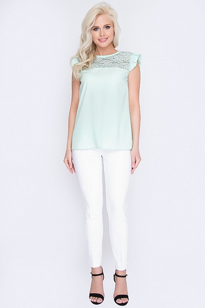 Комбинированная блузка из текстильного полотна и кружева. 30% вискоза 65% п/э,5% эластан Комментарии к товару