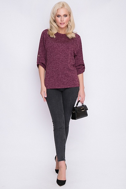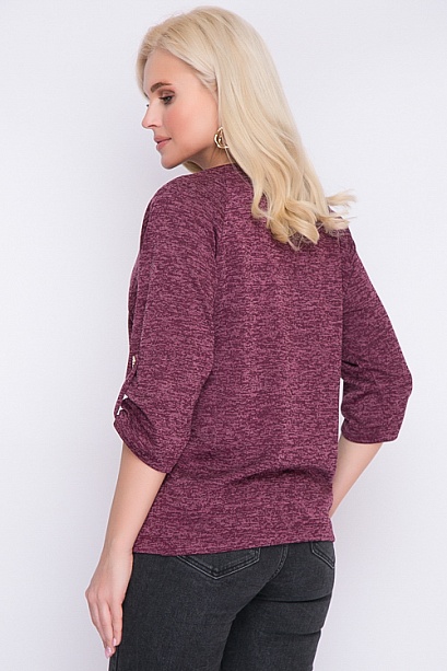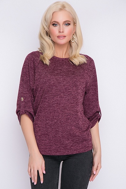 Блузка из меланжевого трикотажа свободного силуэта.Рукав реглан с патой. 30% вискоза 65% п/э,5% эластан Комментарии к товару