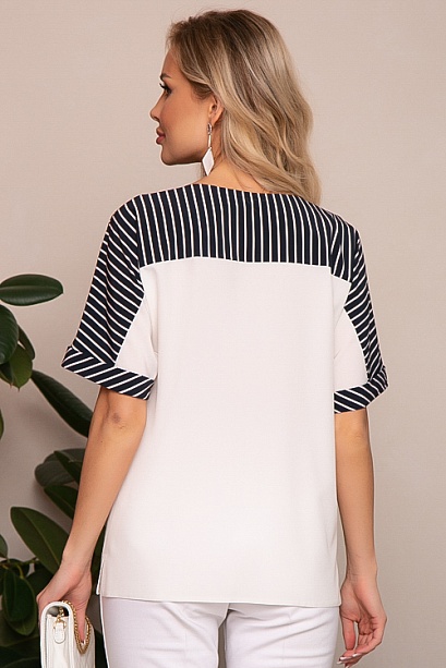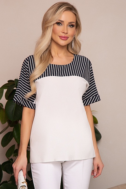 Комбинированная блузка из текстильного полотна свободного силуэта. 30% вискоза 65% п/э,5% эластан Комментарии к товару