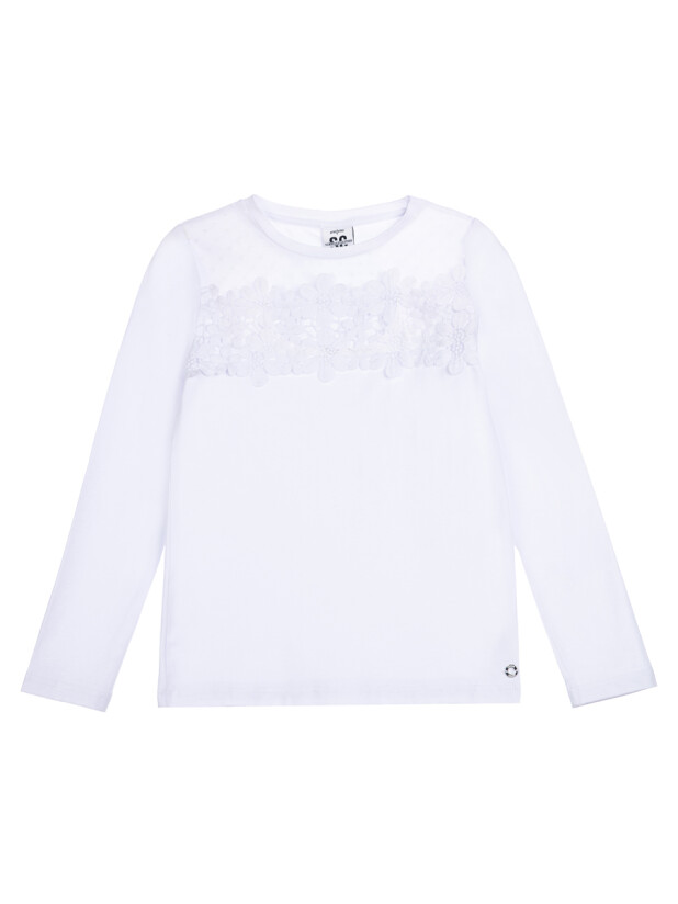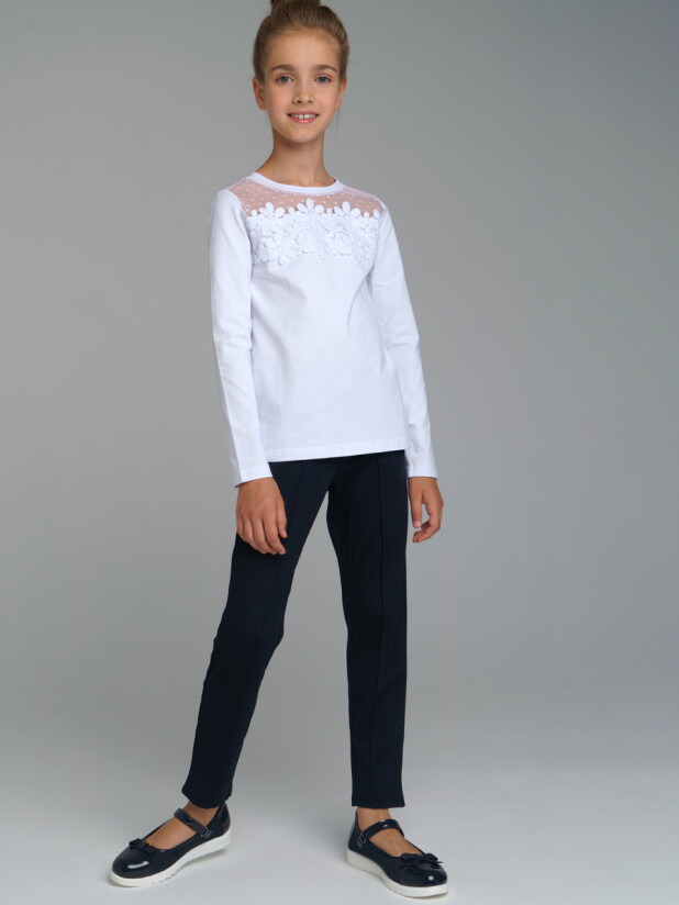 Белая трикотажная блузка для девочки-подростка от PlayToday из школьной коллекции — стильная и удобная альтернатива классической текстильной блузке.
