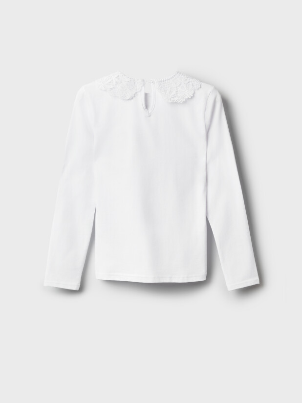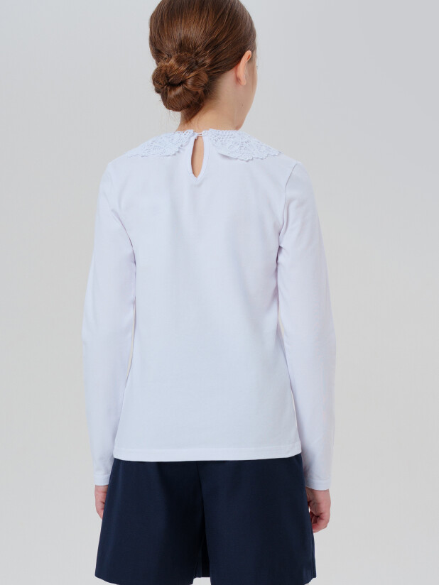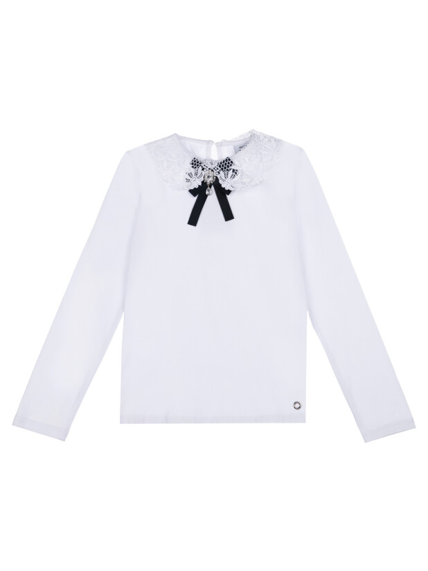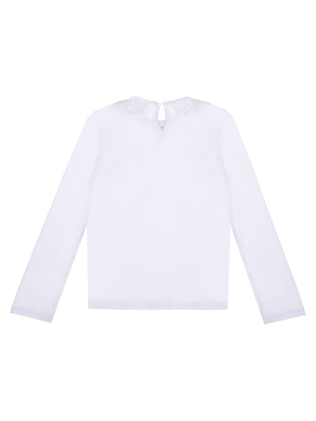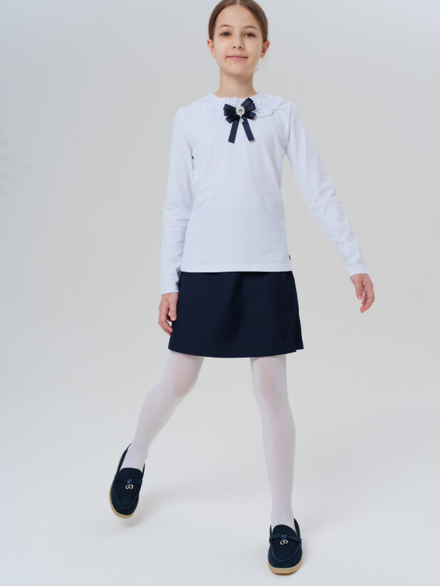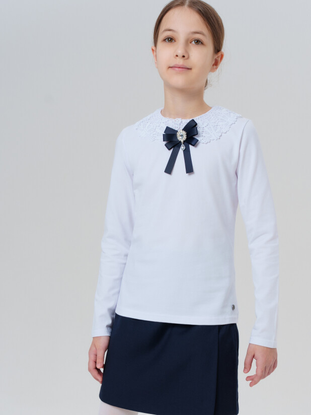 Белая трикотажная блузка с длинным рукавом для девочки-подростка от PlayToday из школьной коллекции — стильный и комфортный вариант для школы и торжественных событий.