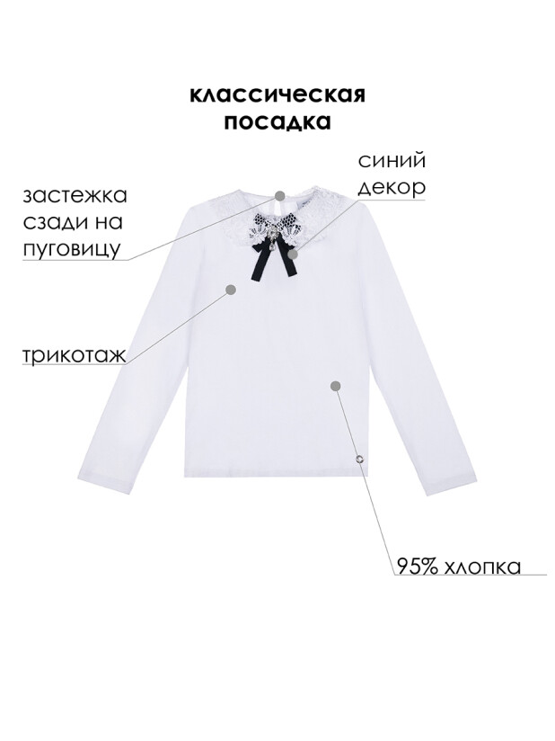 Эта нарядная блузка для школы станет отличной альтернативой классической рубашке. Мягкий хлопковый трикотаж с добавлением эластана приятно ощущается на коже, не вызывает раздражения и позволяет коже дышать. Материал хорошо держит форму и остаётся опрятным даже после частых стирок.