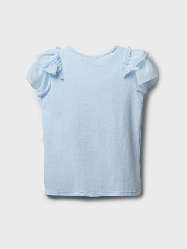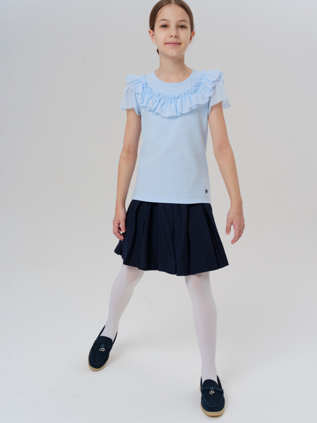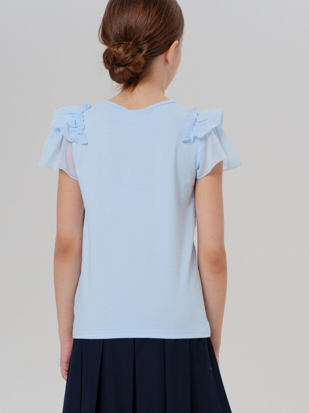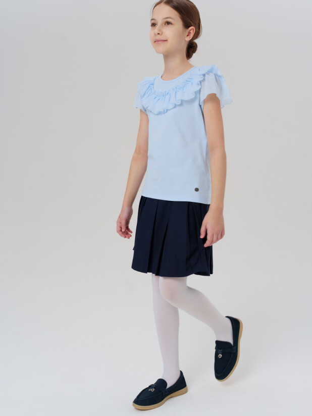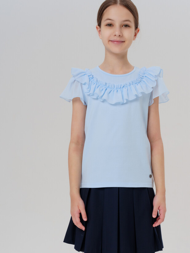 Голубая нарядная трикотажная блузка для девочки-подростка от PlayToday из школьной коллекции — идеальный выбор для школы и торжественных событий.