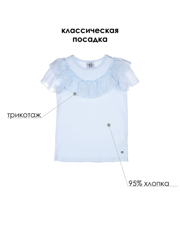 Эта нарядная блузка для школы — отличный вариант на каждый день и для особых случаев. Голубая трикотажная ткань с высоким содержанием хлопка приятна к телу, хорошо пропускает воздух и не вызывает раздражения. Блузка мягкая, эластичная, не стесняет движений и при этом прекрасно держит форму.