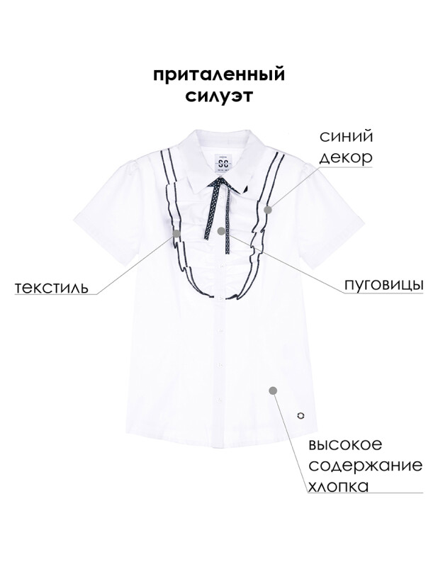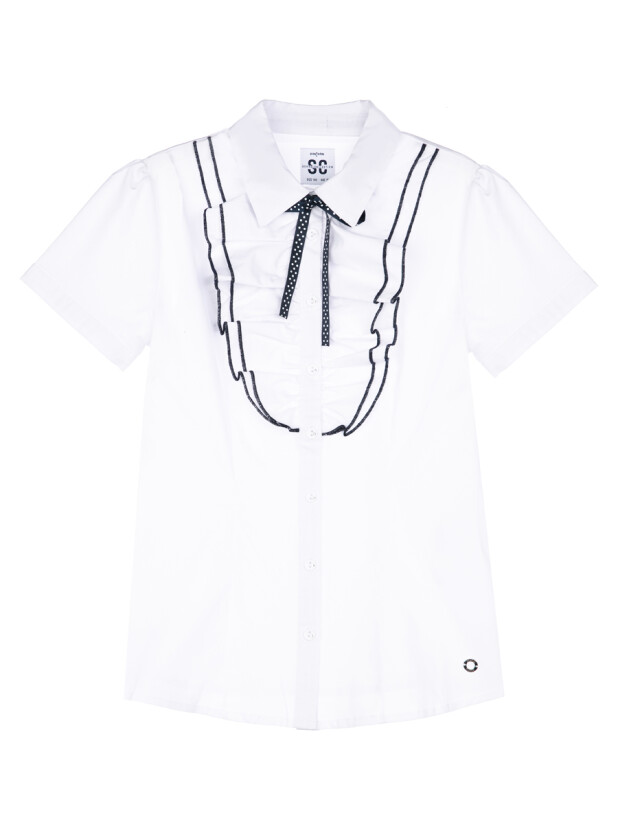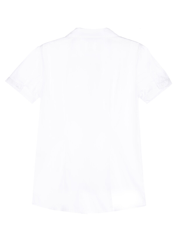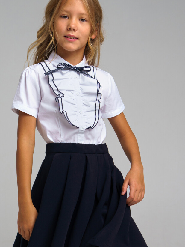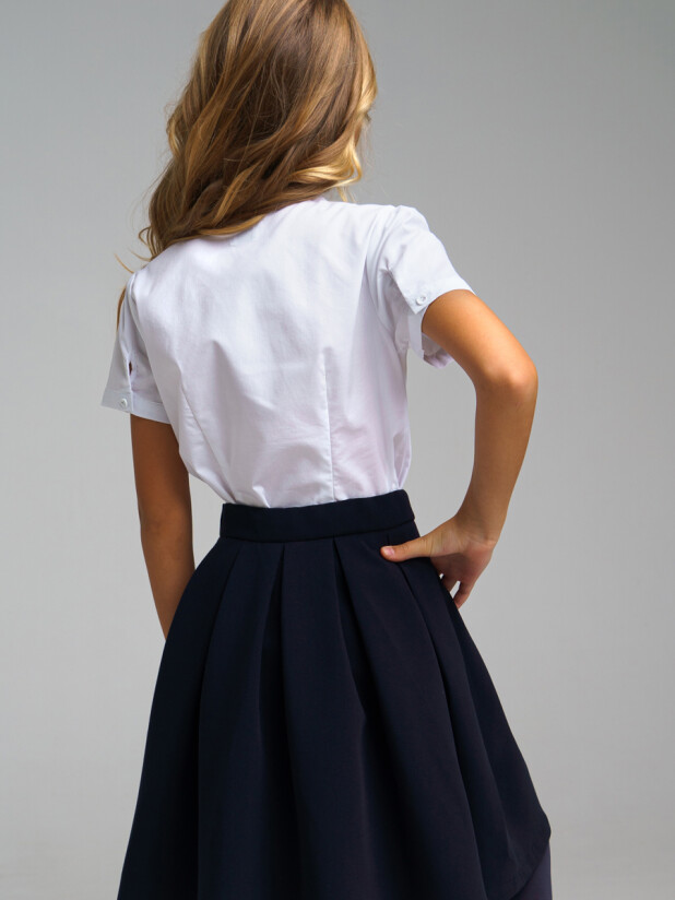 Белая блузка с коротким рукавом для девочки-подростка от бренда PlayToday из школьной коллекции — стильный и универсальный элемент для учебных будней и торжественных школьных событий.