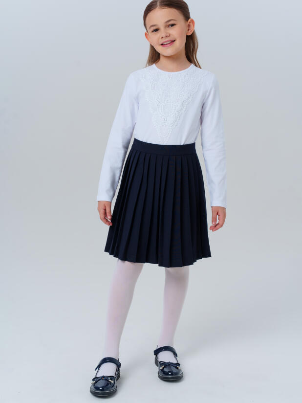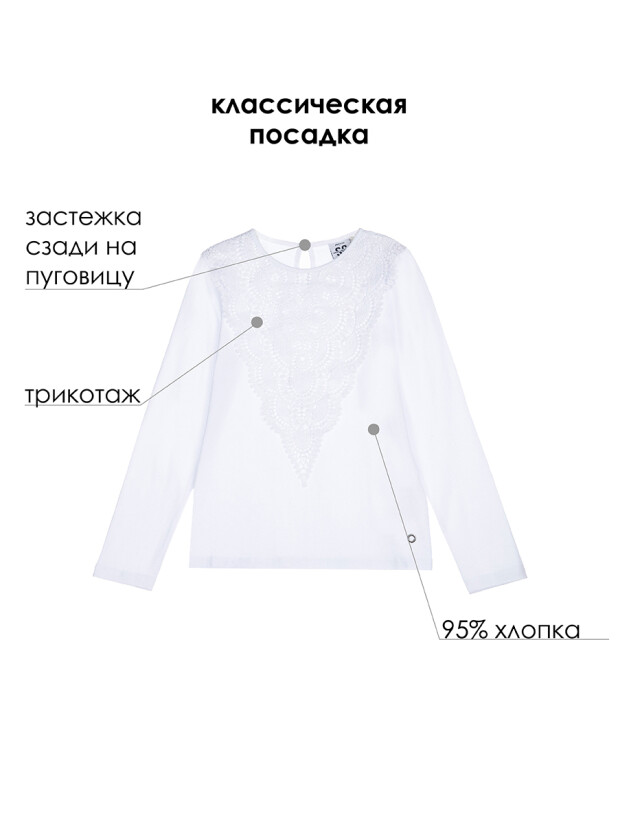 Эта трикотажная блузка для школы — идеальная альтернатива классической текстильной рубашке. Мягкий хлопковый трикотаж с эластаном обеспечивает комфорт на весь учебный день — ткань приятна к телу и остаётся опрятной даже после многочисленных стирок. Блузка не вытягивается, хорошо держит форму и легко гладится.