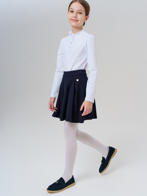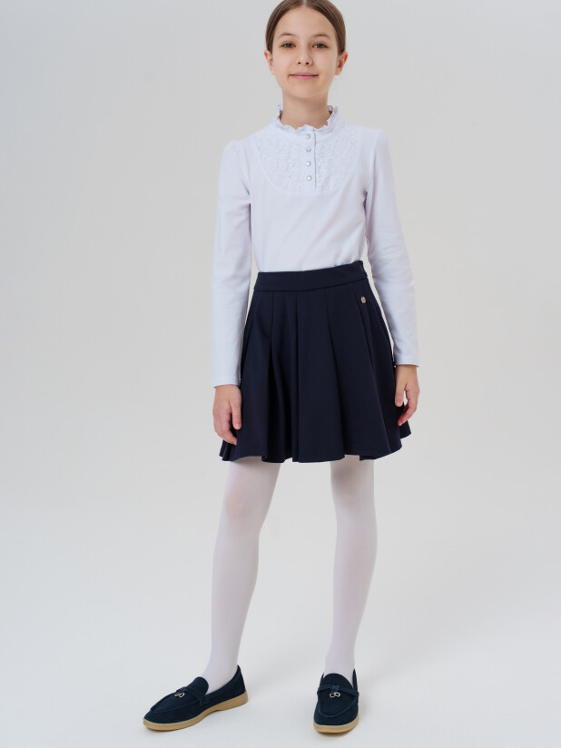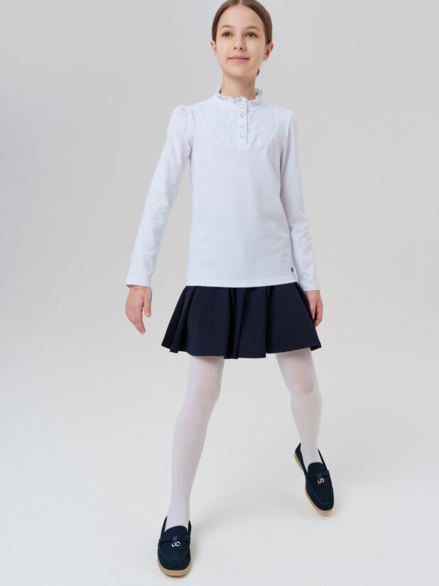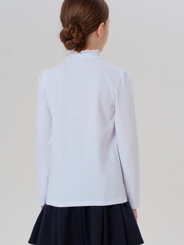 Белая трикотажная блузка для девочки-подростка от PlayToday — стильный и комфортный вариант для школы и праздничных дней.