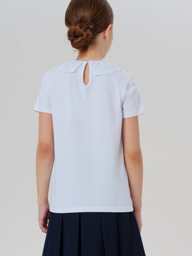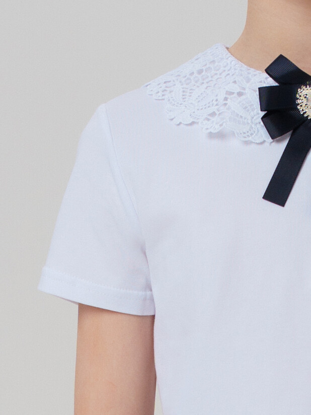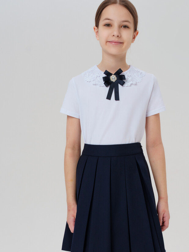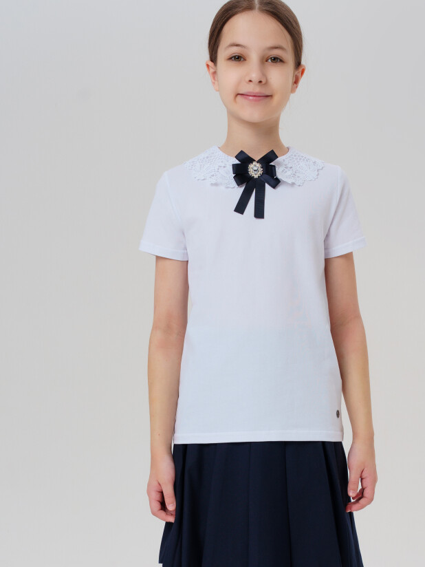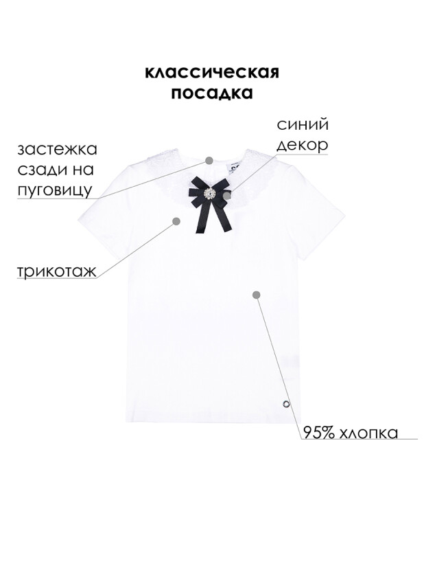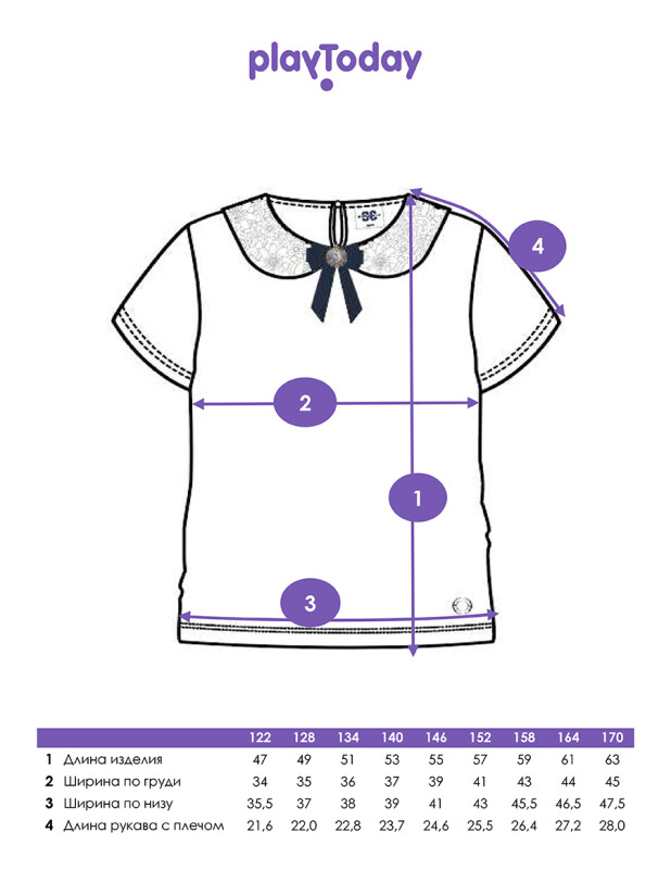 О товаре Белая трикотажная блузка для девочки-подростка от бренда PlayToday из школьной коллекции — комфортная альтернатива классической текстильной рубашке. Идеальный выбор для школы, праздников и торжественных мероприятий. Преимущества модели: + ткань с высоким содержанием хлопка (95%) + кружевной воротник с декоративным бантом + удобная застёжка на спине на пуговицу + полуприлегающий силуэт + универсальный белый цвет + лёгкий уход Эта нарядная стильная блузка для школы выполнена из качественного трикотажа с высоким содержанием хлопка — ткань мягкая, комфортная и хорошо держит форму в течение всего дня. Благодаря добавлению эластана блузка сохраняет аккуратный внешний вид после множества стирок и легко переносит активные школьные будни. Полуприлегающий крой обеспечивает свободу движений и комфорт на уроках, переменах и занятиях. Ажурный кружевной воротник с бантом добавляет образу изящества и торжественности — такая нарядная блузка для девочки идеально подойдёт на 1 сентября, выпускной или школьные мероприятия. Совет по стилю: сочетайте эту школьную блузку с юбками, сарафанами, брюками или жилетами из коллекции PlayToday — получится стильный и аккуратный образ для школы или праздника. Блузка не требует сложного ухода — достаточно машинной стирки при температуре до 30°C. Она сохраняет форму даже после частых стирок. Размерный ряд: модель представлена на рост 122–170 см — подходит для девочек от 7 до 16 лет. Эта модная белая блузка для школы от PlayToday — удобный, красивый и универсальный элемент школьного гардероба, который нравится и детям, и родителям. СОСТАВ 95% хлопок, 5% эластан. Уход Максимальная температура стирки 30°С. Мягкий режим. Не отбеливать. Утюжить при температуре не более 110°С. Чистка запрещена. Не применять сушку в барабане. Стирать с вещами такой же окраски. Стирать вывернутым наизнанку. Не утюжить отделку. Предварительная стирка обязательна. Утюжить с изнаночной стороны. Бренд PlayToday АРТИКУЛ 22227042 Цвет Белый Возрастная категория Школьники, Подростки Пол Женский Сезон Демисезон Год коллекции 2025 Страна бренда Германия Страна производства Китай Возраст 8 лет, 9 лет, 10 лет, 11 лет, 12 лет, 13 лет, 14 лет, 15 лет, 16 лет, 17 лет, 7 лет Маркировка Товары легкой промышленности и одежда Миниколлекция School