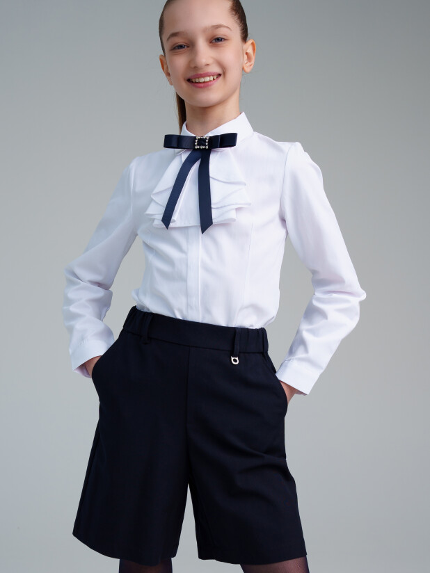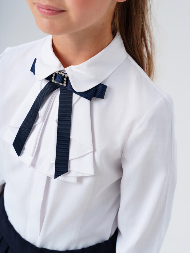 Эта школьная белая блузка для девочки с длинным рукавом — универсальная основа для любого школьного гардероба. Стильная и одновременно практичная модель подойдёт как для будних занятий, так и для торжественных событий — 1 сентября, выпускных, олимпиад или классных собраний.