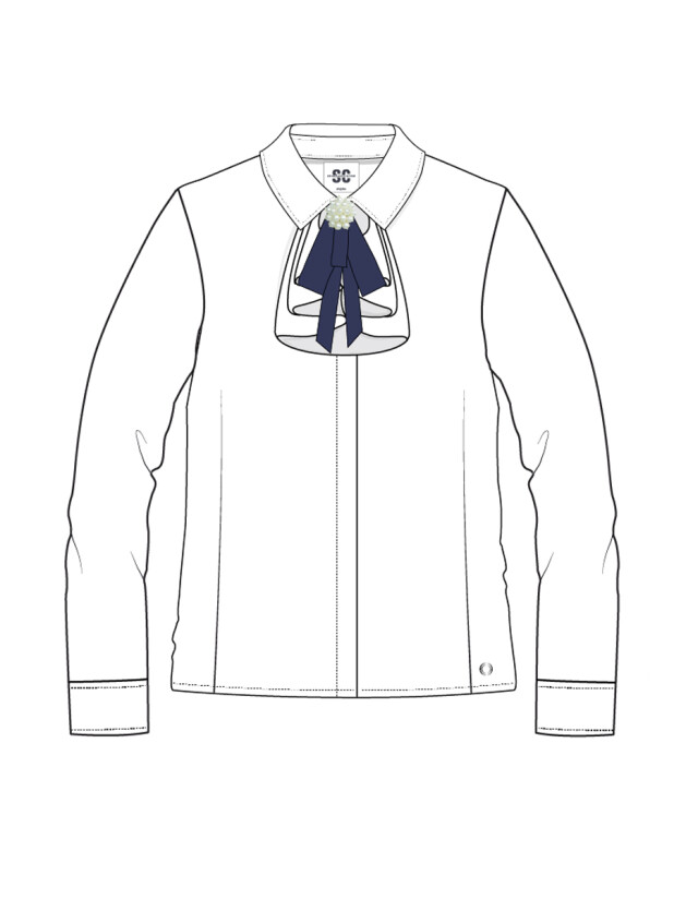 Крой продуман до мелочей: прямой силуэт с лёгким приталиванием подчёркивает фигуру и остаётся удобным в движении. Манжеты на рукавах создают опрятный строгий акцент, а классический воротник идеально держит форму. Съёмный бант добавляет образу нарядности — при желании его можно снять для более повседневного варианта.