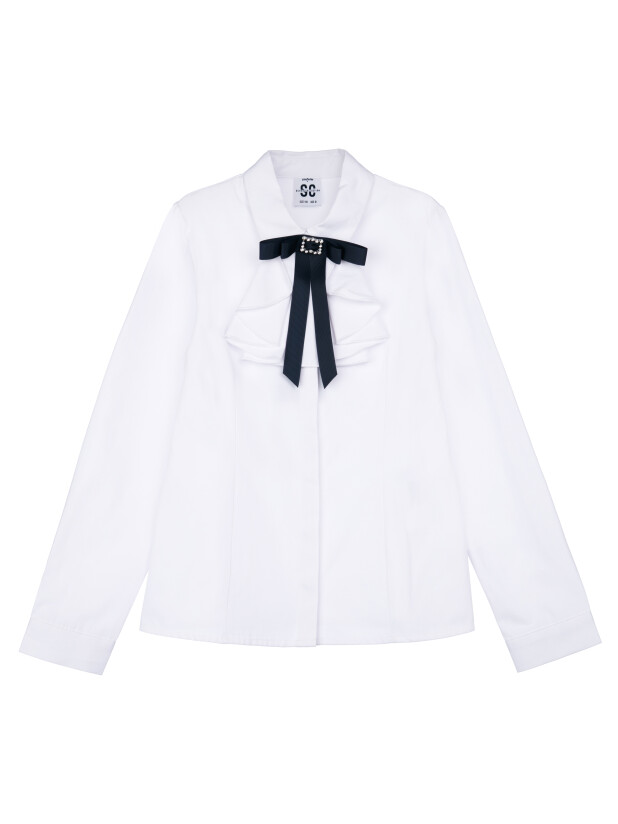 Белая нарядная блузка с длинным рукавом для девочки-подростка от PlayToday — стильный выбор для школы и торжественных мероприятий.