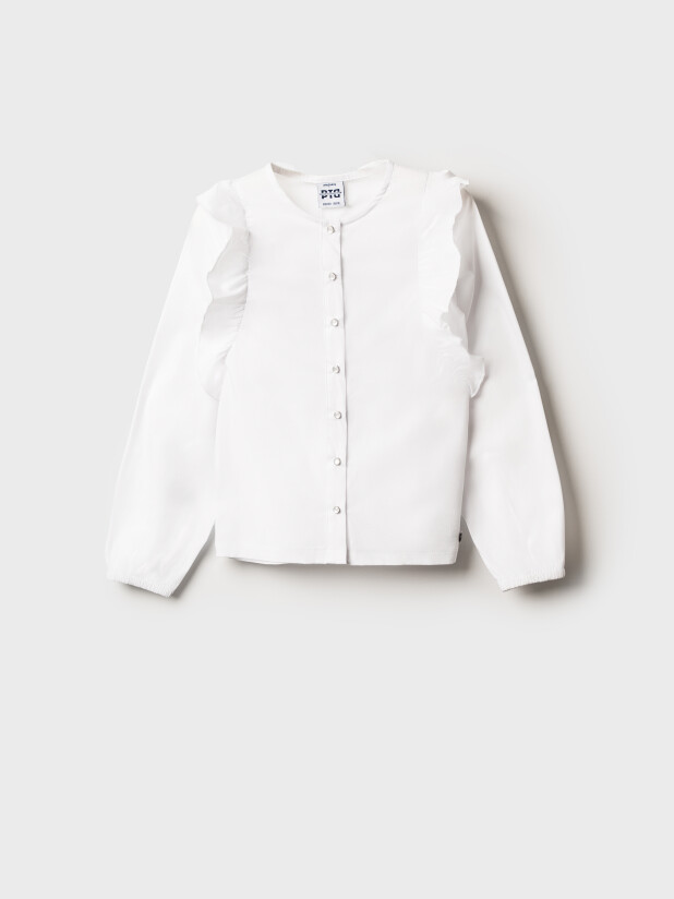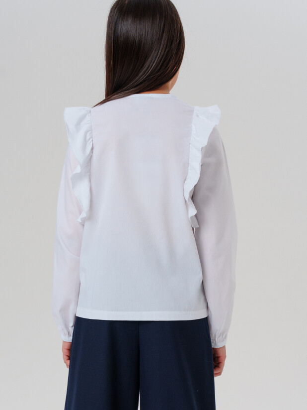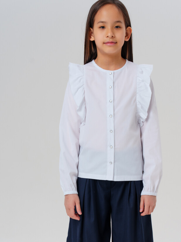 Белая нарядная блузка для девочки-подростка от бренда PlayToday — элегантный и практичный выбор для школы и праздников.