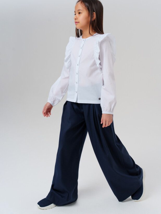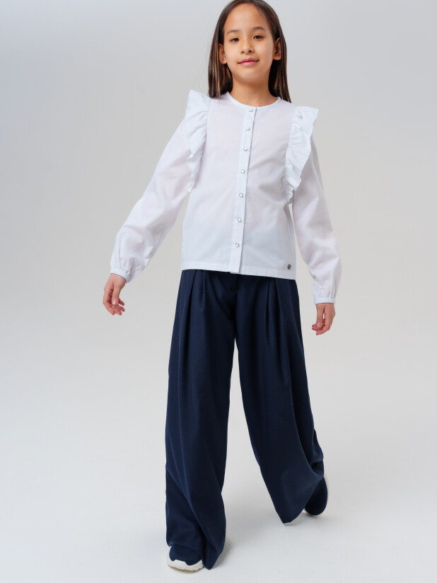 Совет по стилю: нарядная блузка легко сочетается с любыми элементами школьного гардероба — сарафанами, юбками, брюками, жилетами или жакетами от PlayToday. Для праздничного образа добавьте галстук, бант или декоративную брошь.