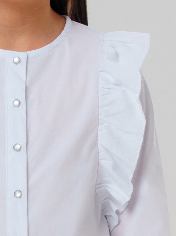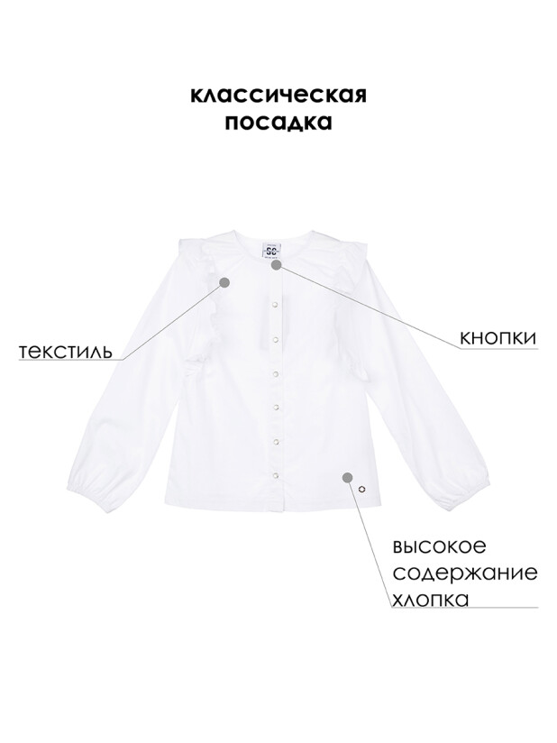 Прямой крой создаёт элегантный и современный силуэт. Блузка удобно садится по фигуре, не сковывает движений — ребёнку будет комфортно на уроках, переменах и любых активностях в школе. Модель застёгивается на кнопки — это удобно и быстро.